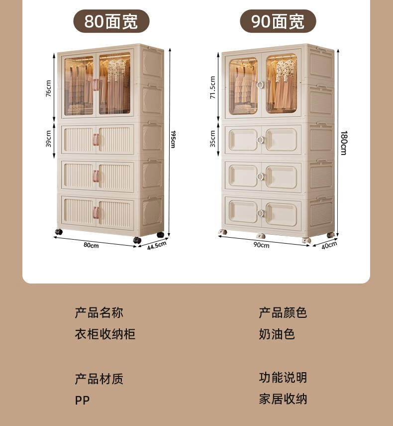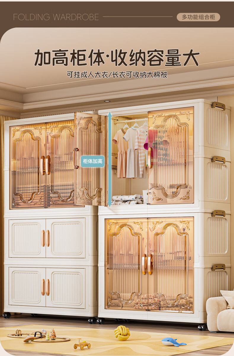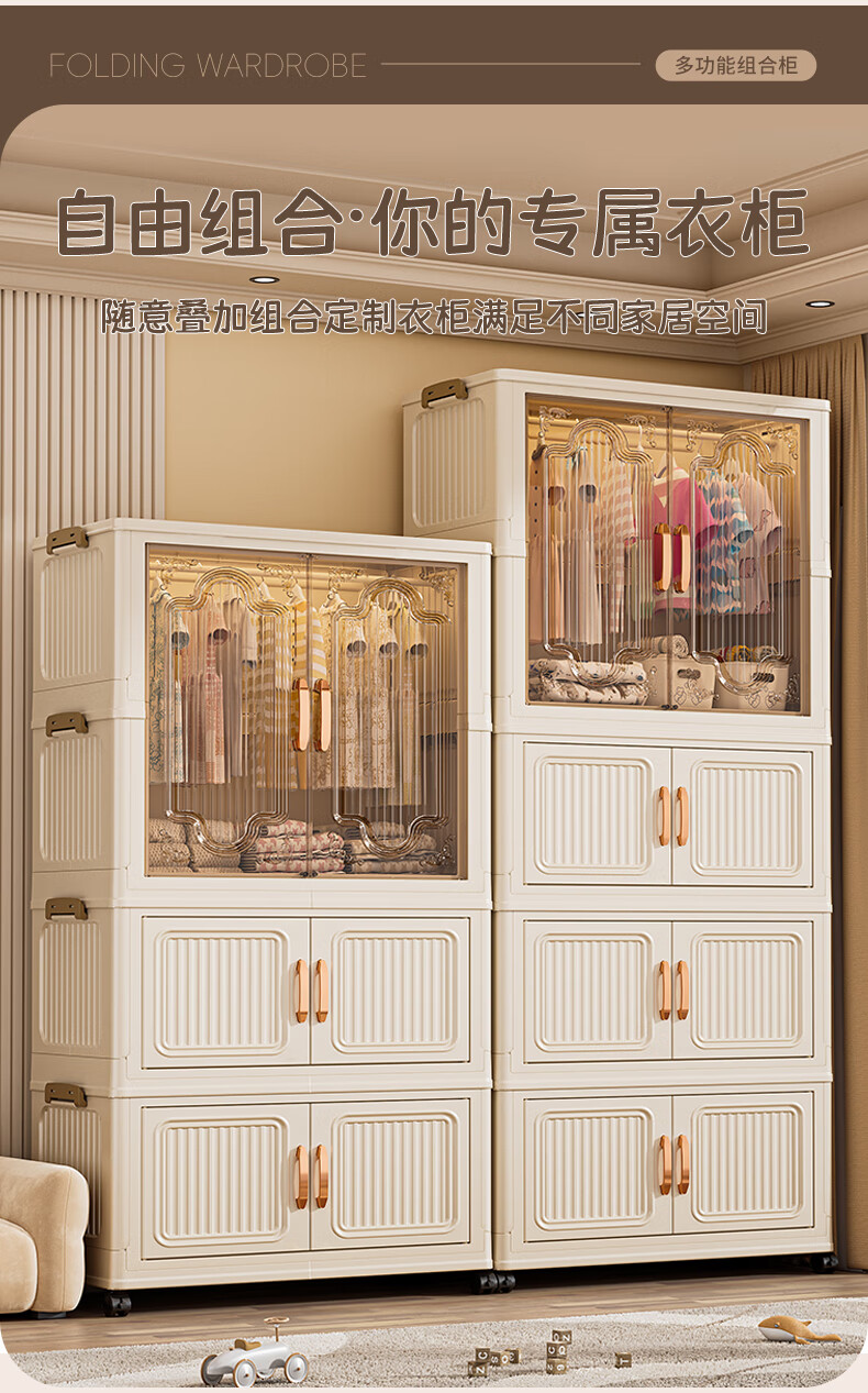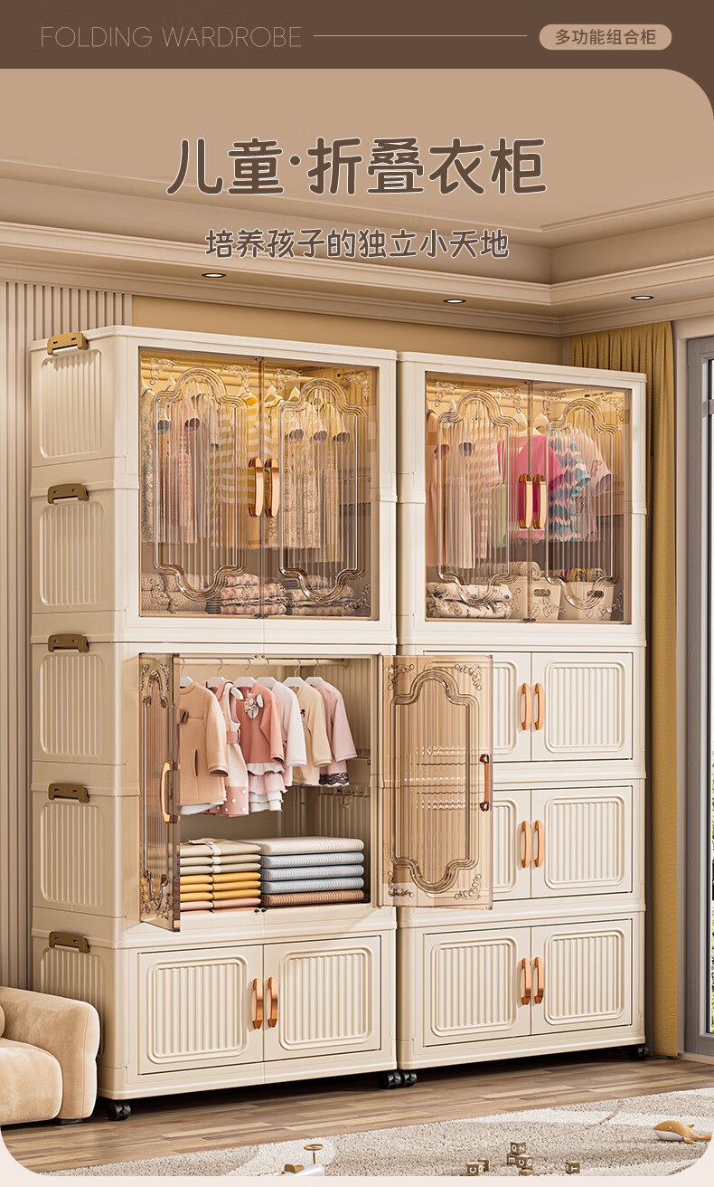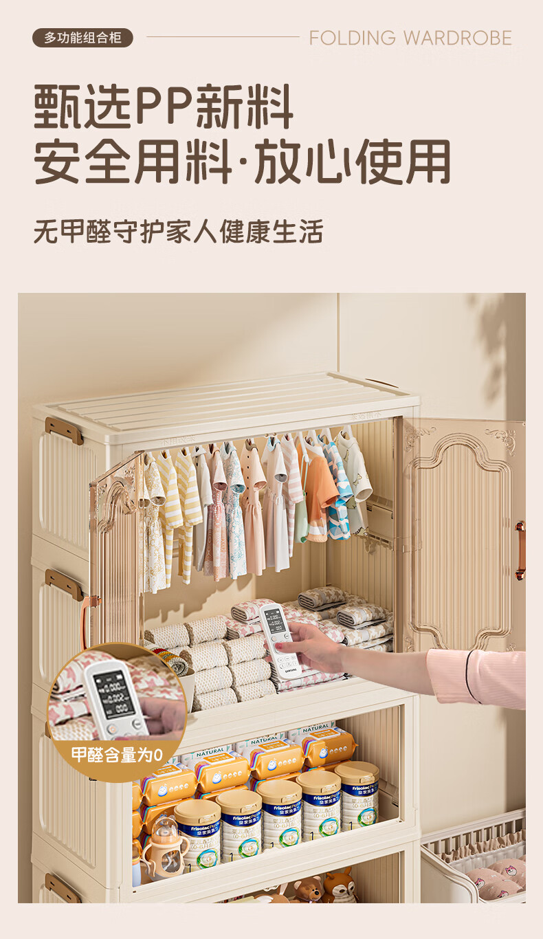 Nafenai installation-free baby wardrobe thickened children's wardrobe baby products storage cabinet with wheels removable clothing storage box 55CM-1 hanging layer + 3 folding cabinets (activity price) 5 hangers for free Deppon/Beijing delivery door-to-door