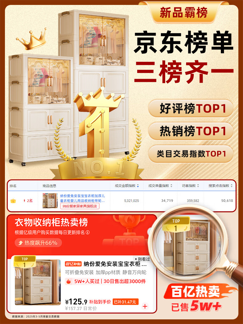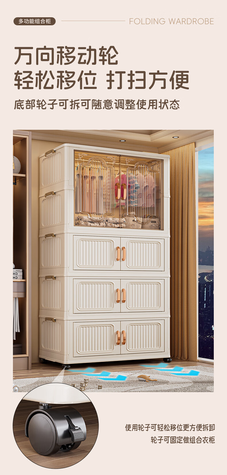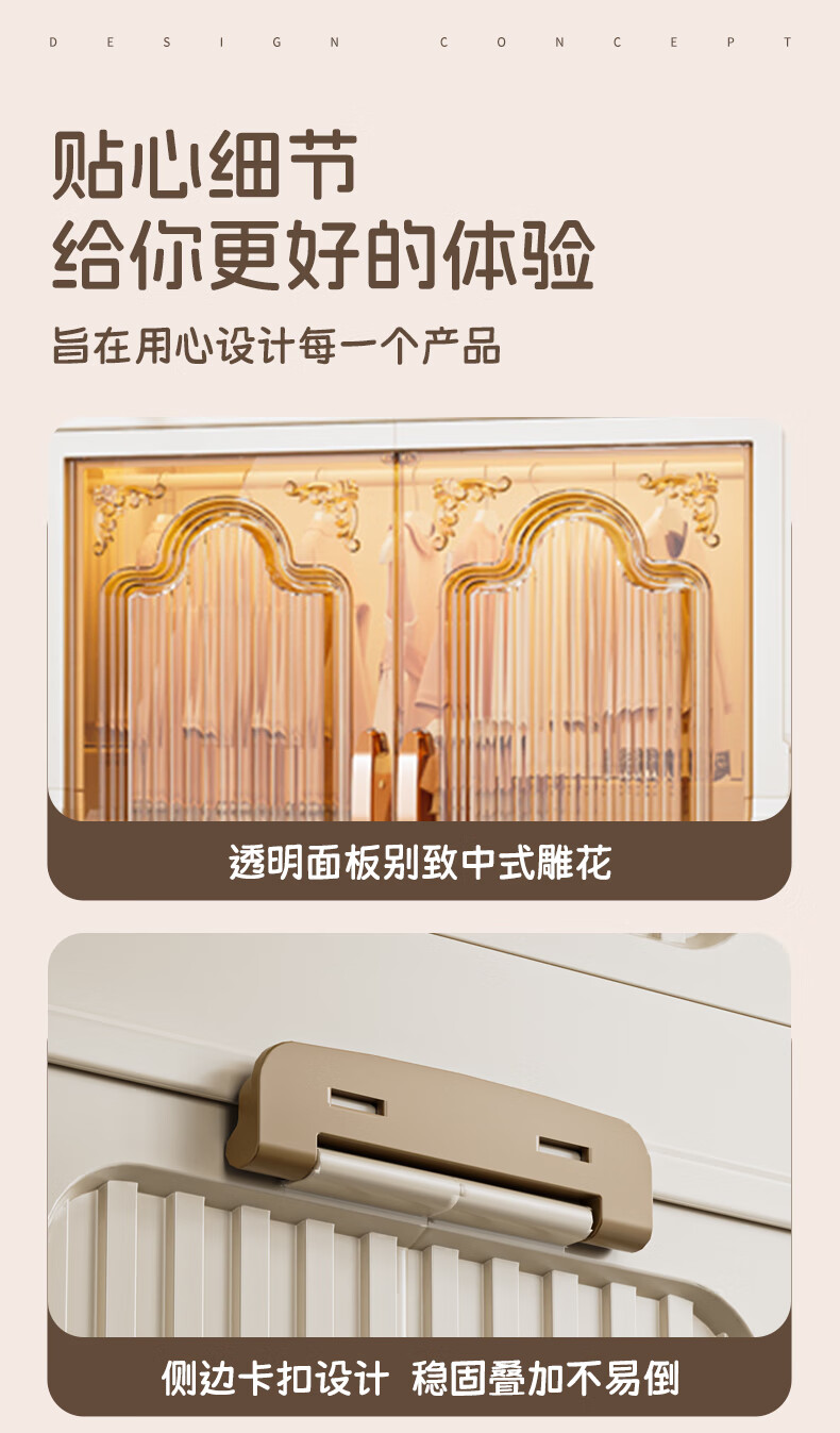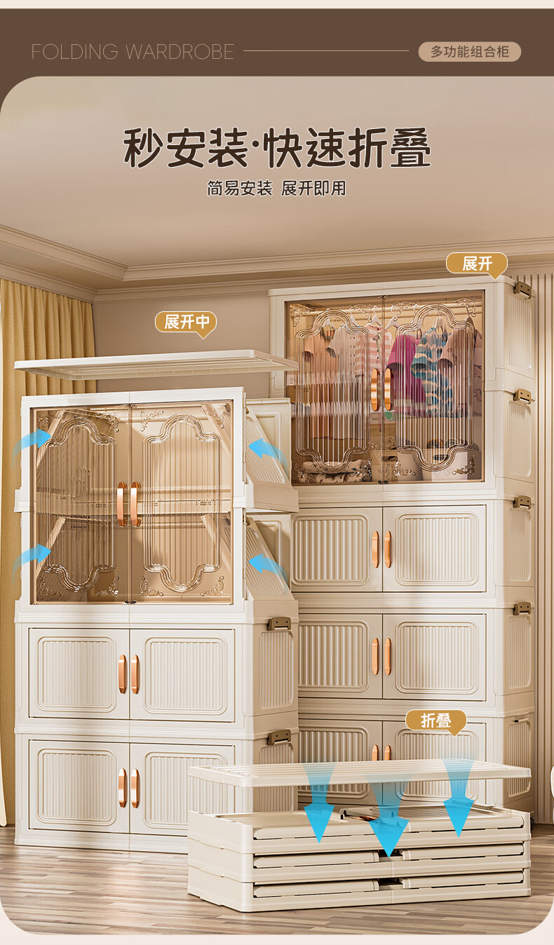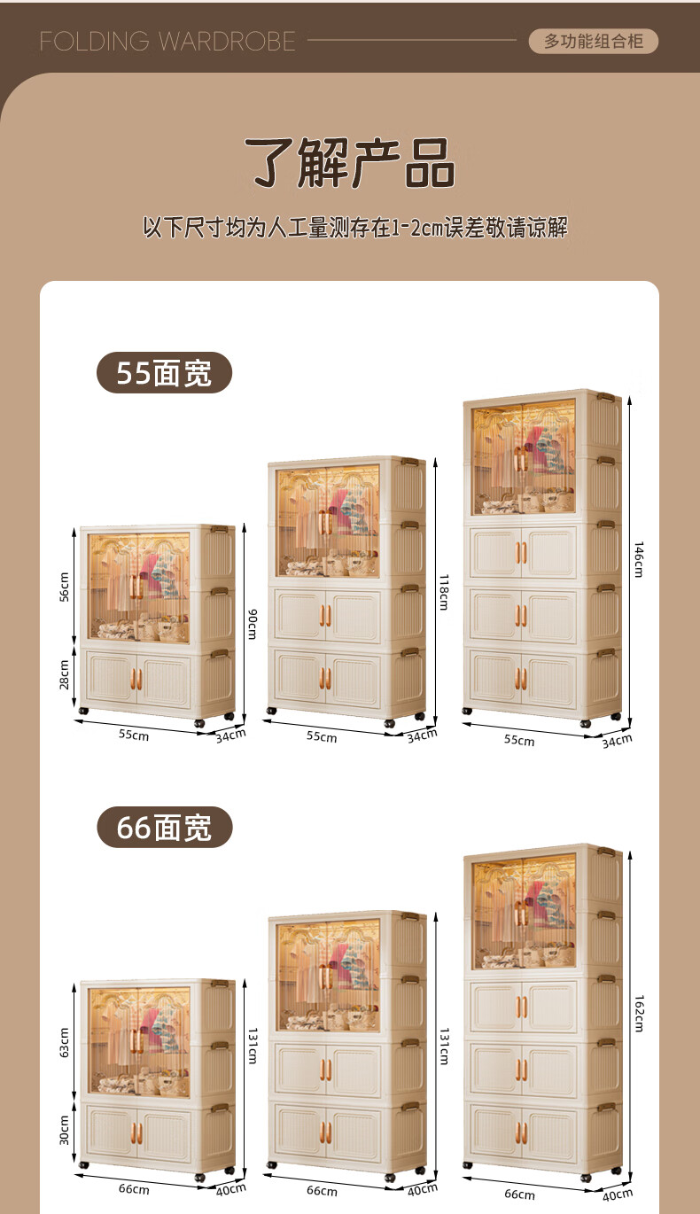 Nafenai installation-free baby wardrobe thickened children's wardrobe baby products storage cabinet with wheels removable clothing storage box 55CM-1 hanging layer + 3 folding cabinets (activity price) 5 hangers for free Deppon/Beijing delivery door-to-door