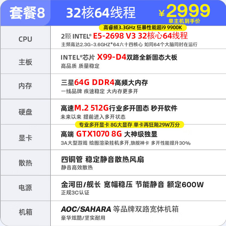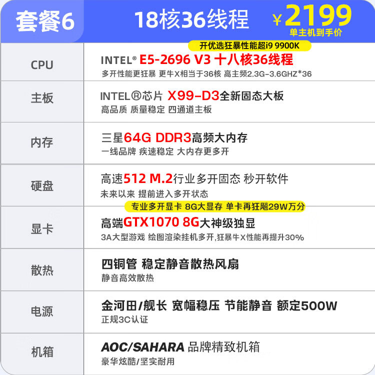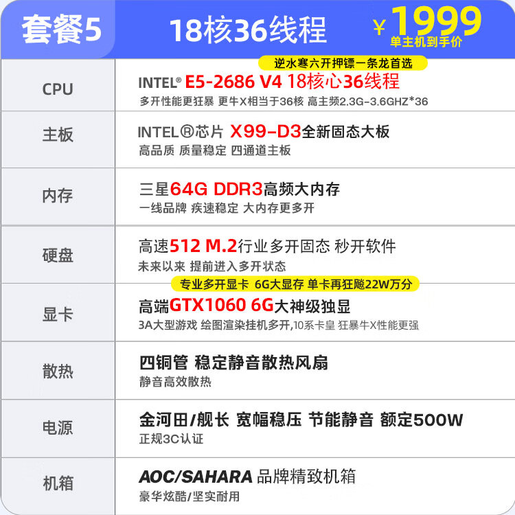 SHANMAO Shanmao Studio 64-core multi-open computer E5 2696V3 Xeon brick host simulator game virtual machine dual-channel package five E5-2686V4-18 core/GTX1060