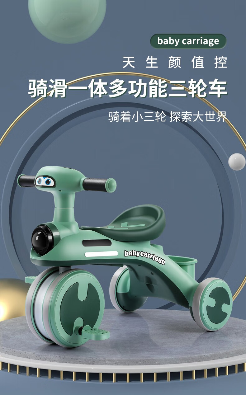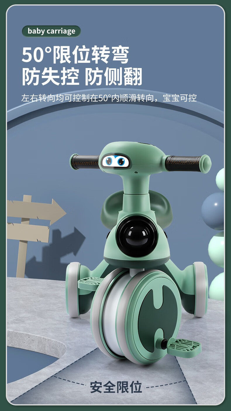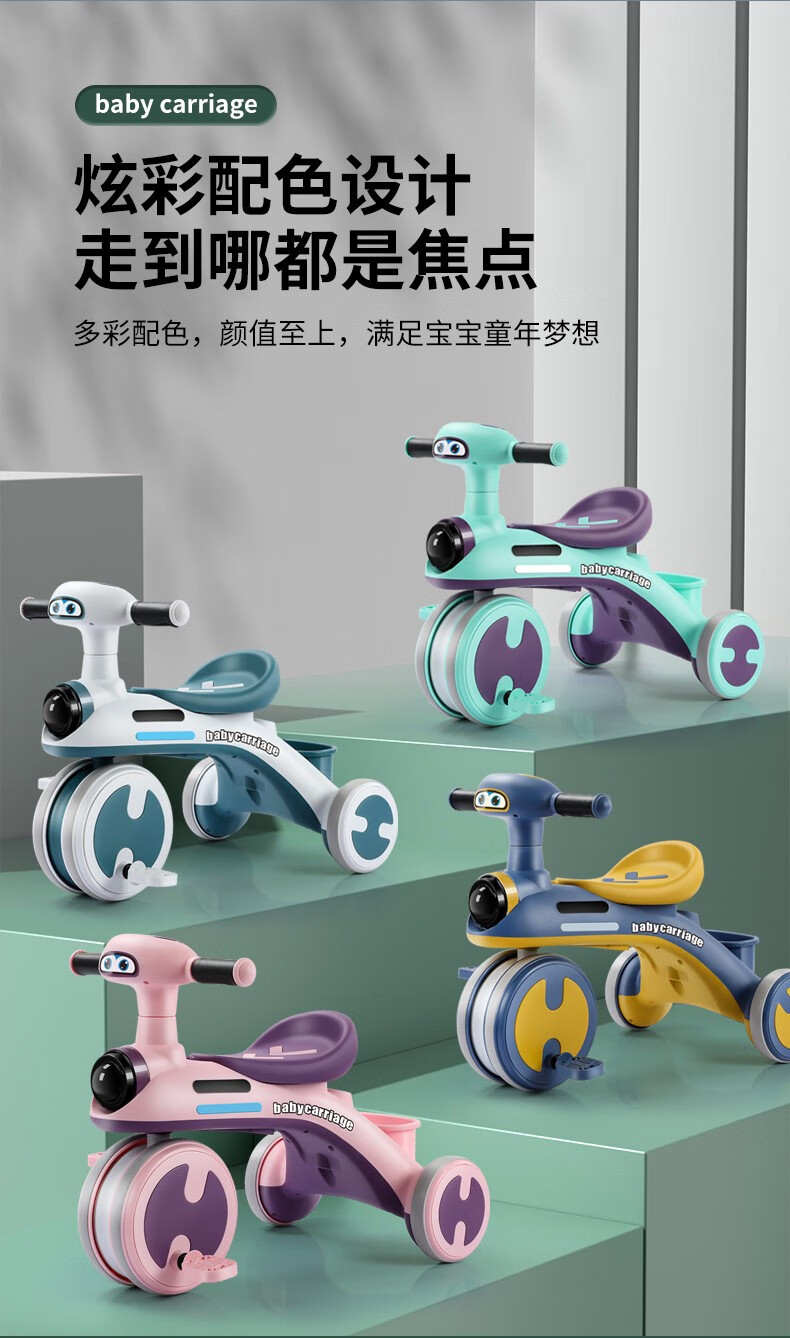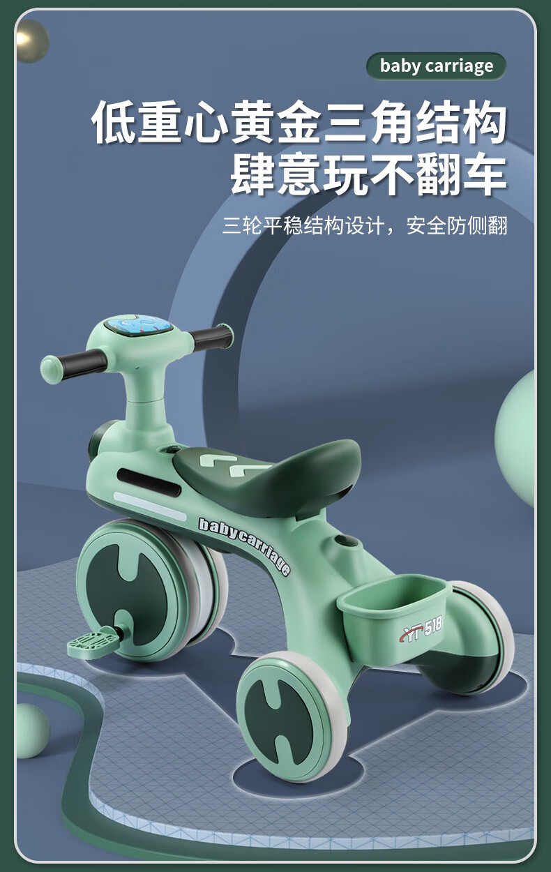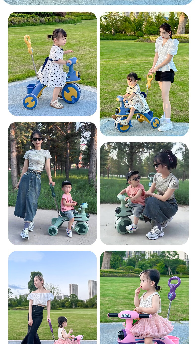 Children's tricycle 1-5 years old bicycle baby stroller lightweight pedal bicycle with music for boys and girls Peter Pan yellow push handle pedal removable basket sound