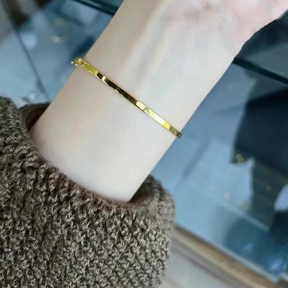 Fat Donglai's same style 18K gold bracelet K color gold plain ring AU750 rose gold gold super shiny surface bracelet simple medium size bracelet (recommended 100-120Jin Jin is equal to 0.5kg)