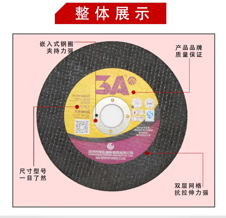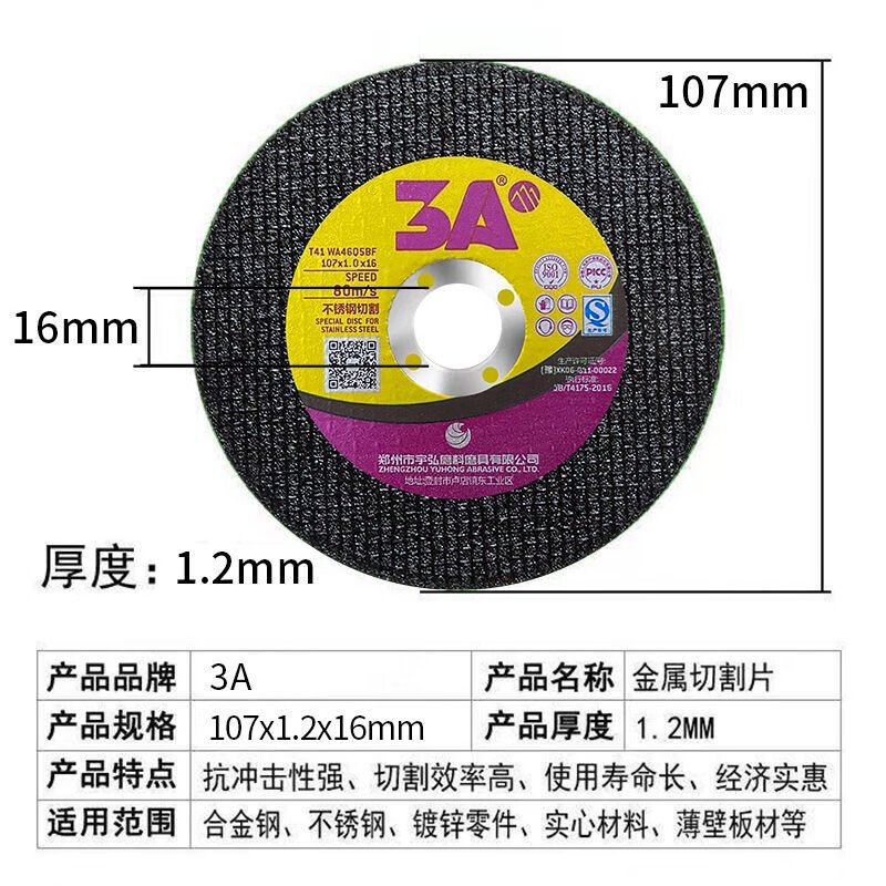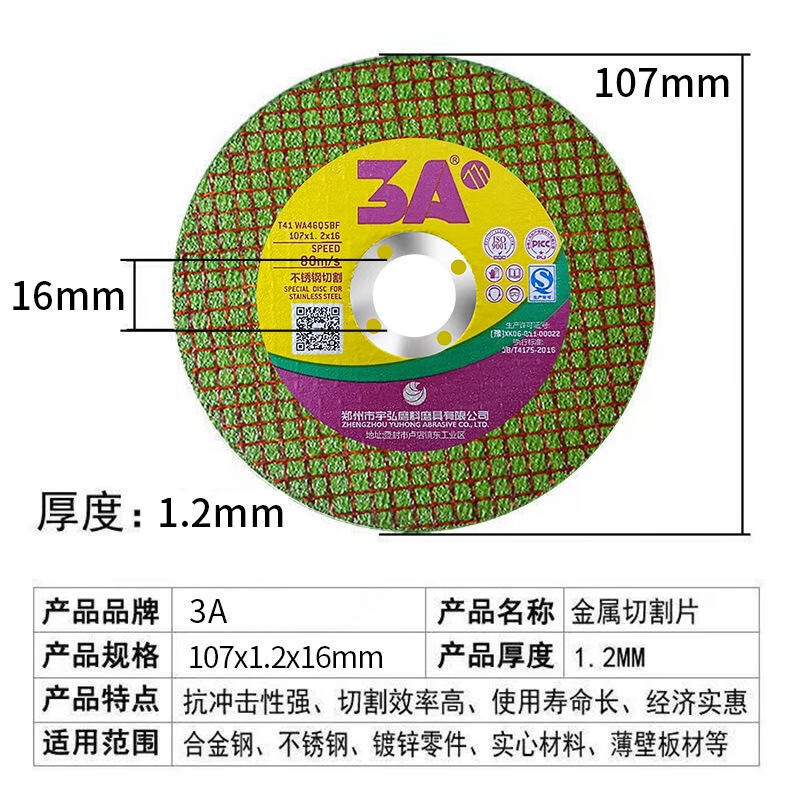 Yuhong Abrasives 3A cutting disc 100 angle grinder resin grinding wheel disc double net red Bora stainless steel slice 3A black disc 800 pieces