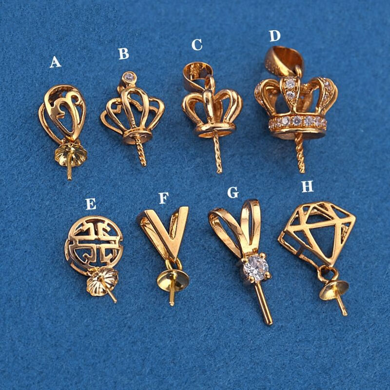 QIWNDIY pearl accessories plated with 18K gold pendant buckle pearl beeswax pendant empty support thickened necklace pendant accessories D type full zircon large crown plated with 18K gold
