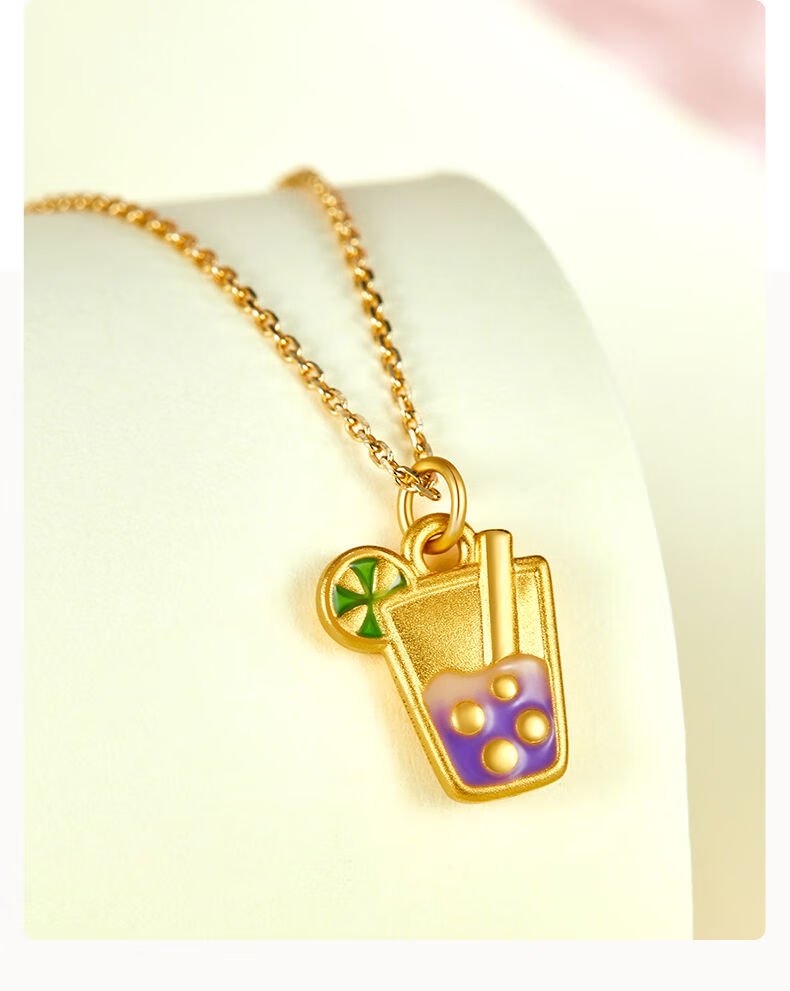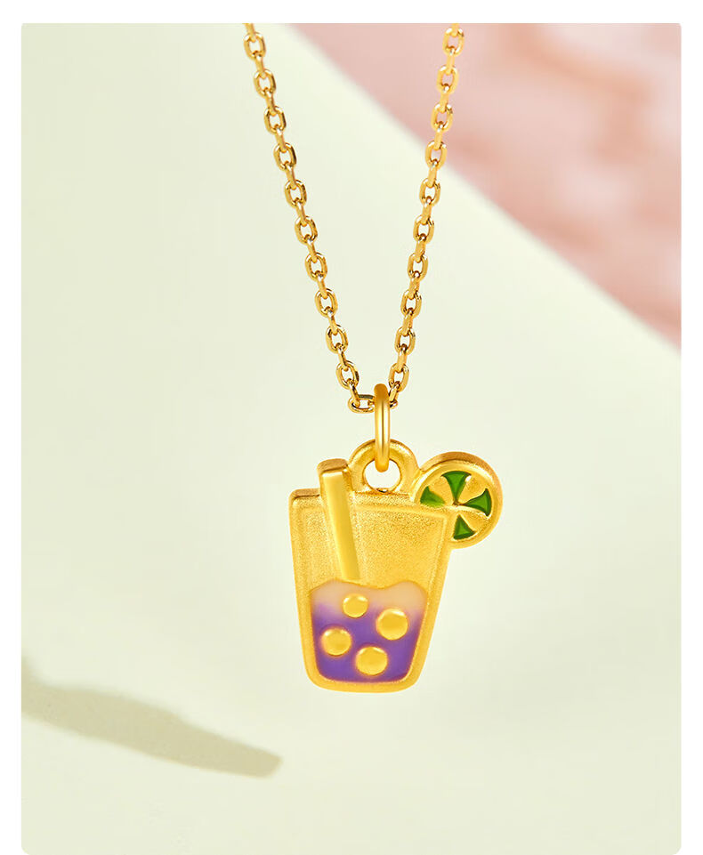 QIWN Happy Sparkling Water Gold Pendant Personalized New Hard Pure Gold Pendant as a Birthday Gift for Your Girlfriend Happy Sparkling Water Hard Pure Gold Pendant 0.68g