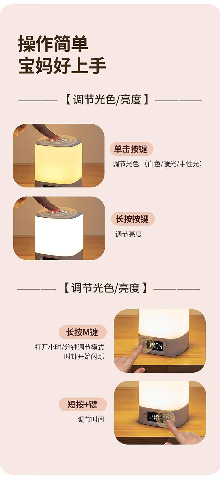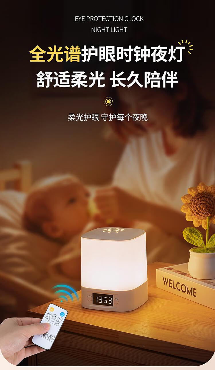 Guard Ma night lamp table lamp bedroom bedside lamp baby feeding eye protection confinement special rechargeable night light new energy clock model rechargeable and plug-in 3600