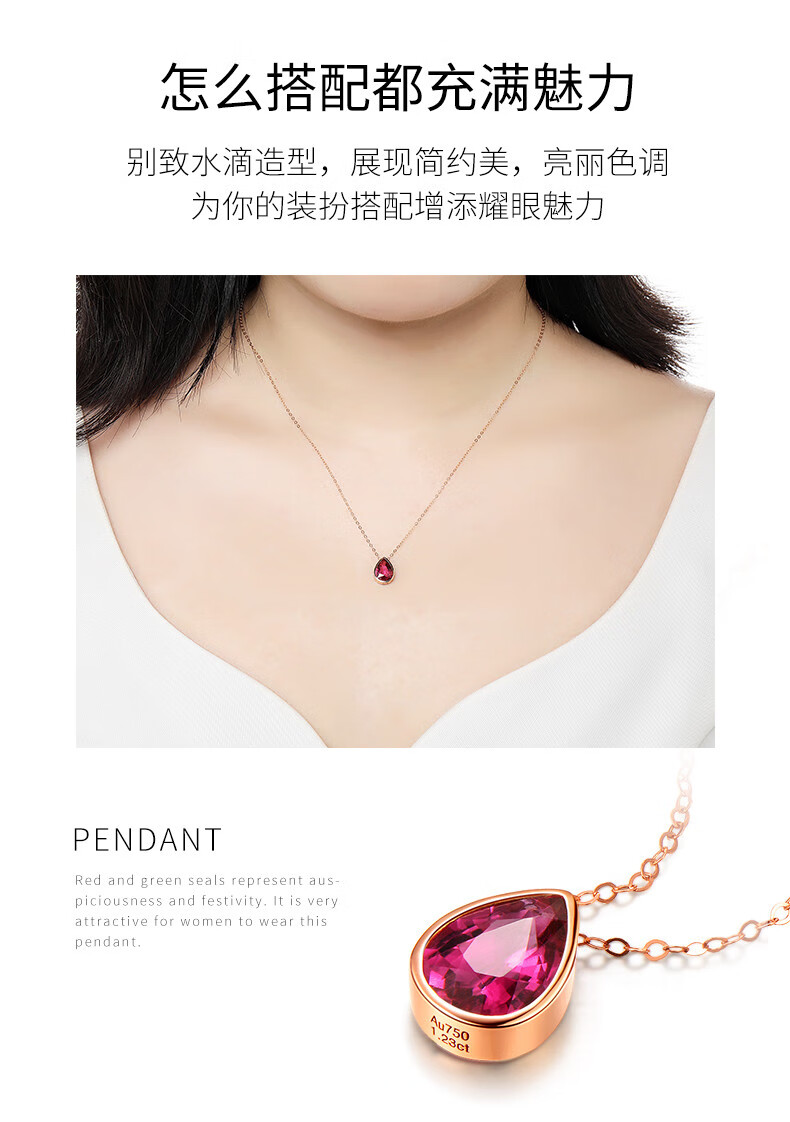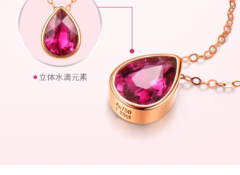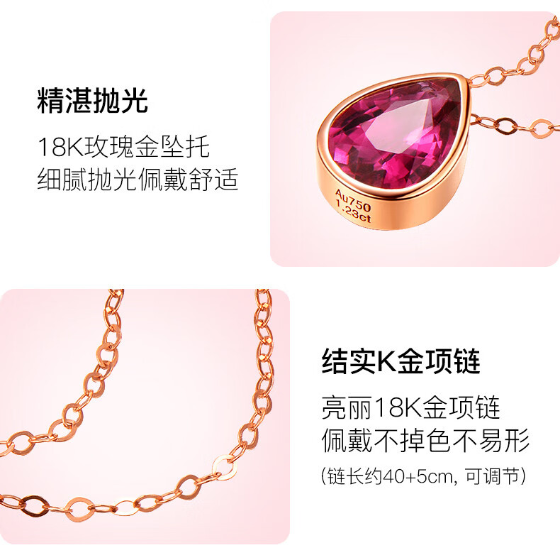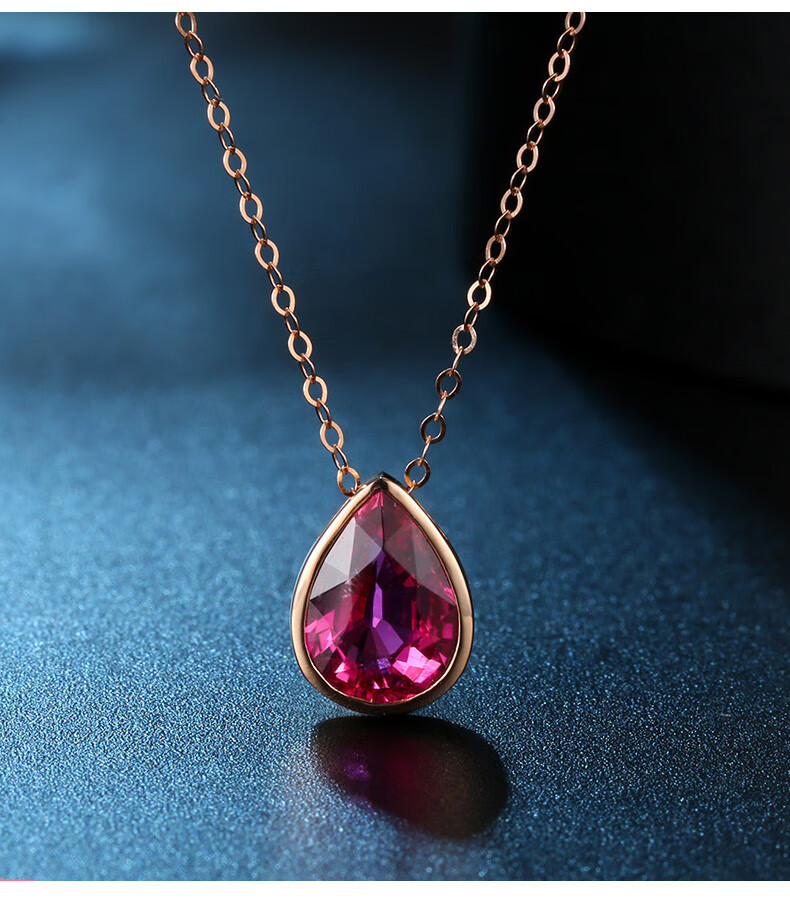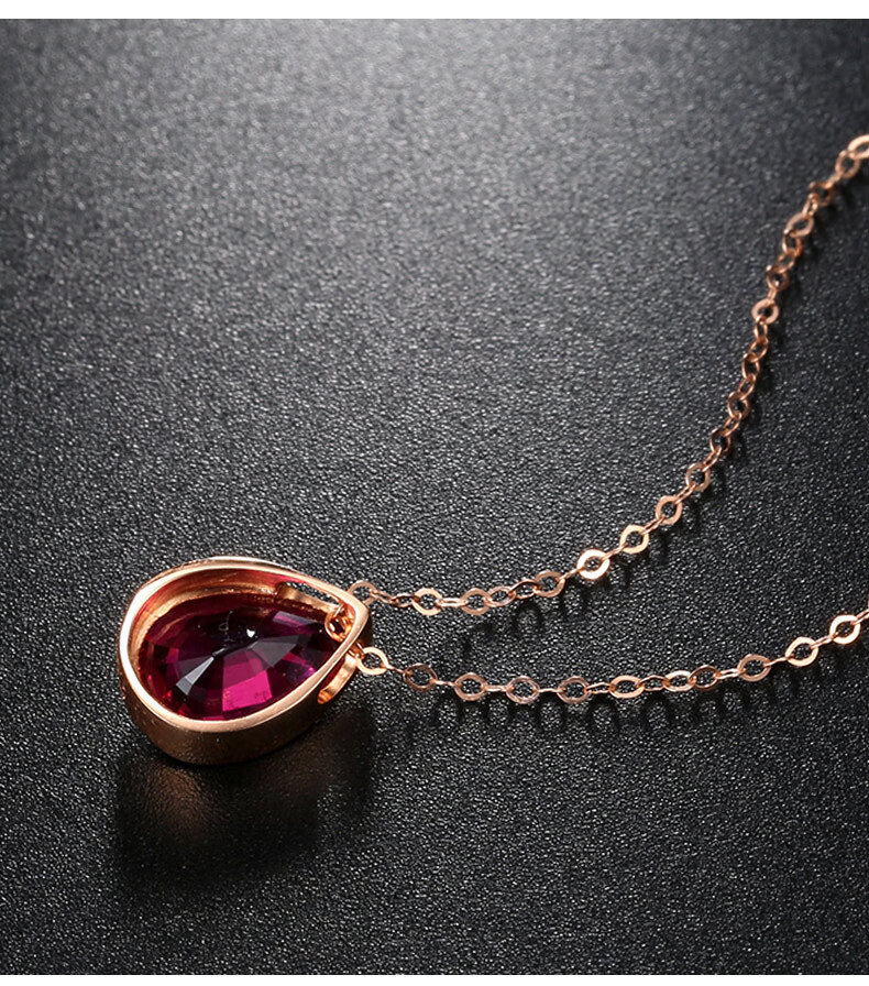 QIWN jewelry drop-shaped natural pigeon blood rubellite pendant set chain 18K rose gold colored gemstone necklace drop-shaped rubellite set chain