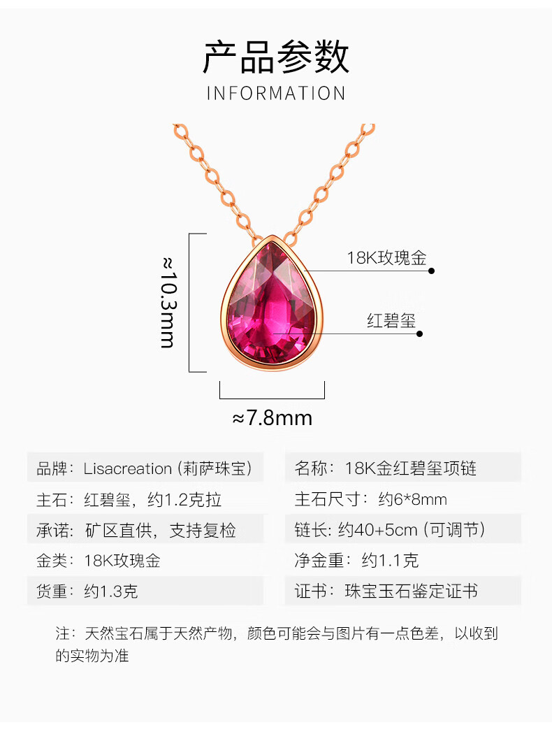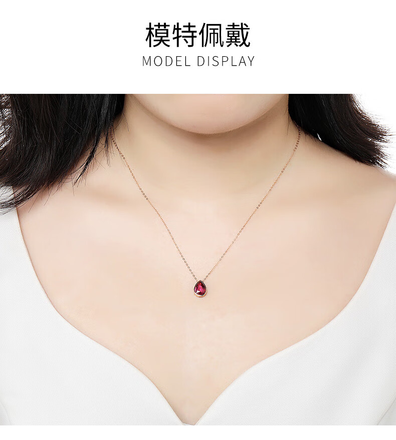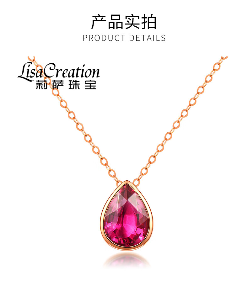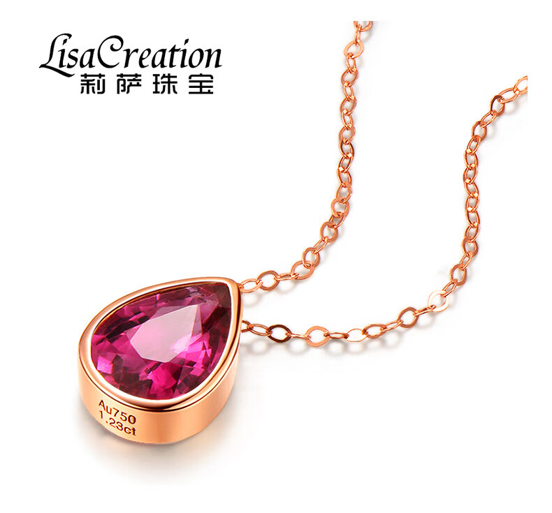 QIWN jewelry drop-shaped natural pigeon blood rubellite pendant set chain 18K rose gold colored gemstone necklace drop-shaped rubellite set chain
