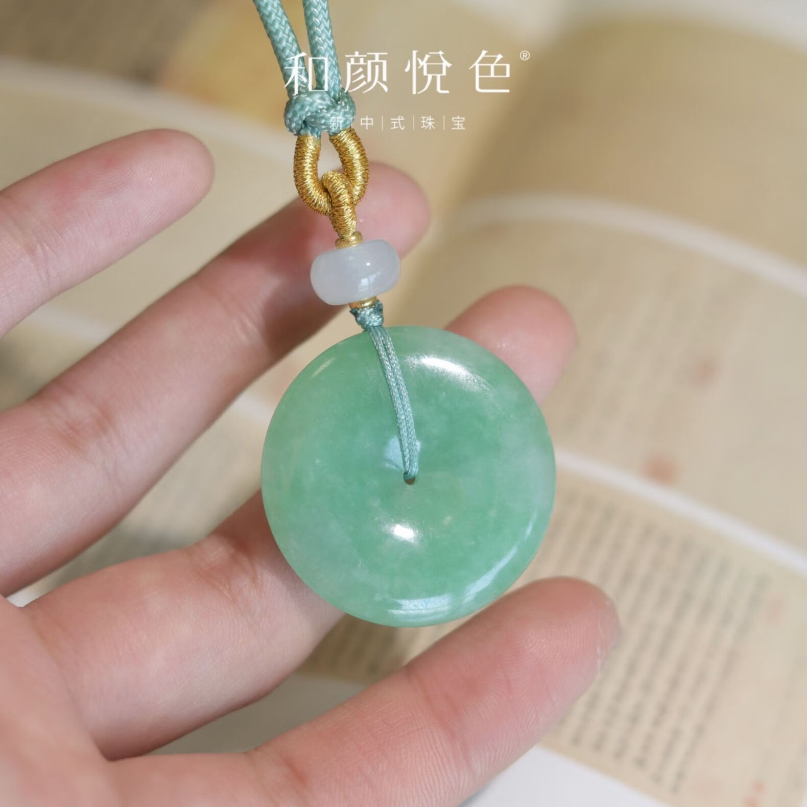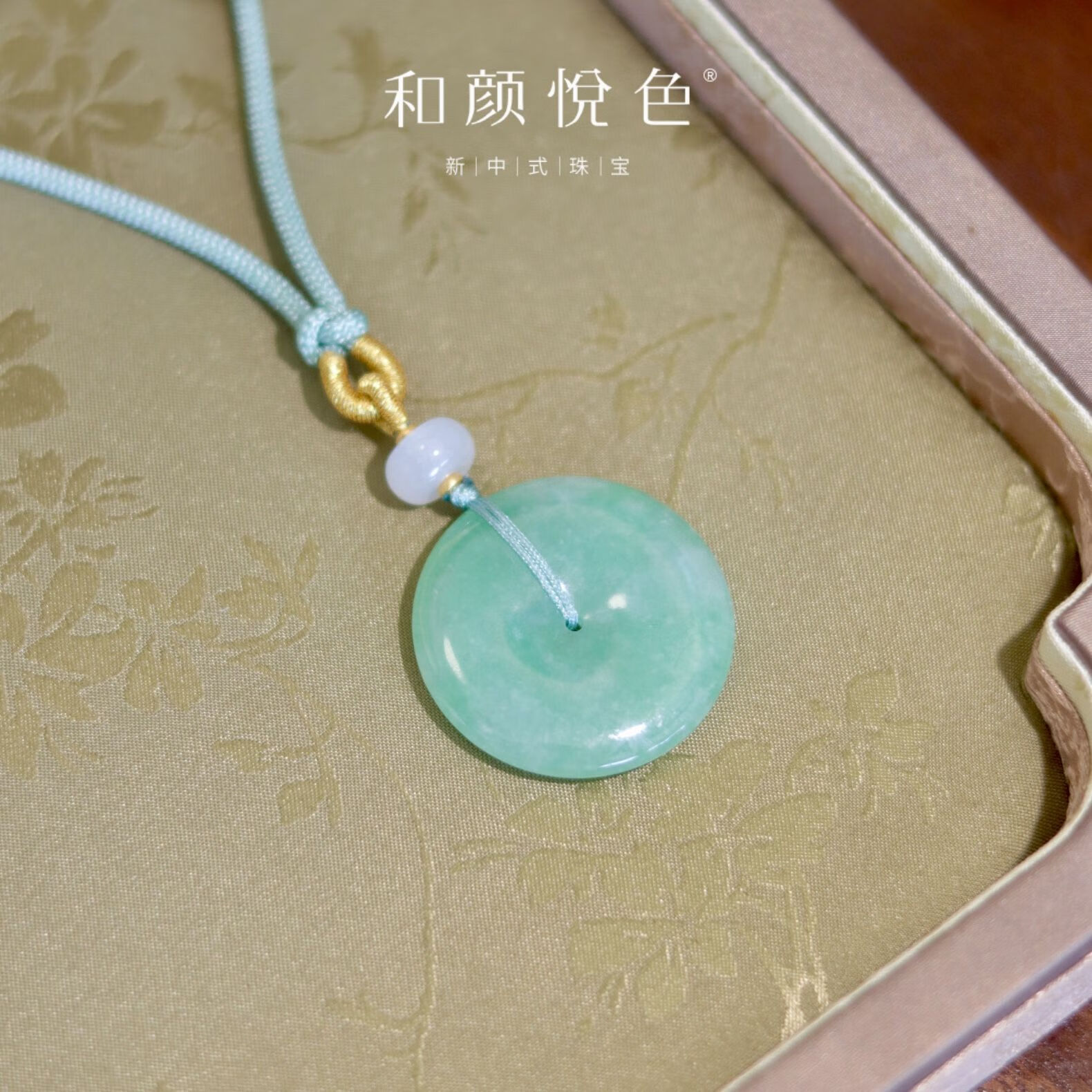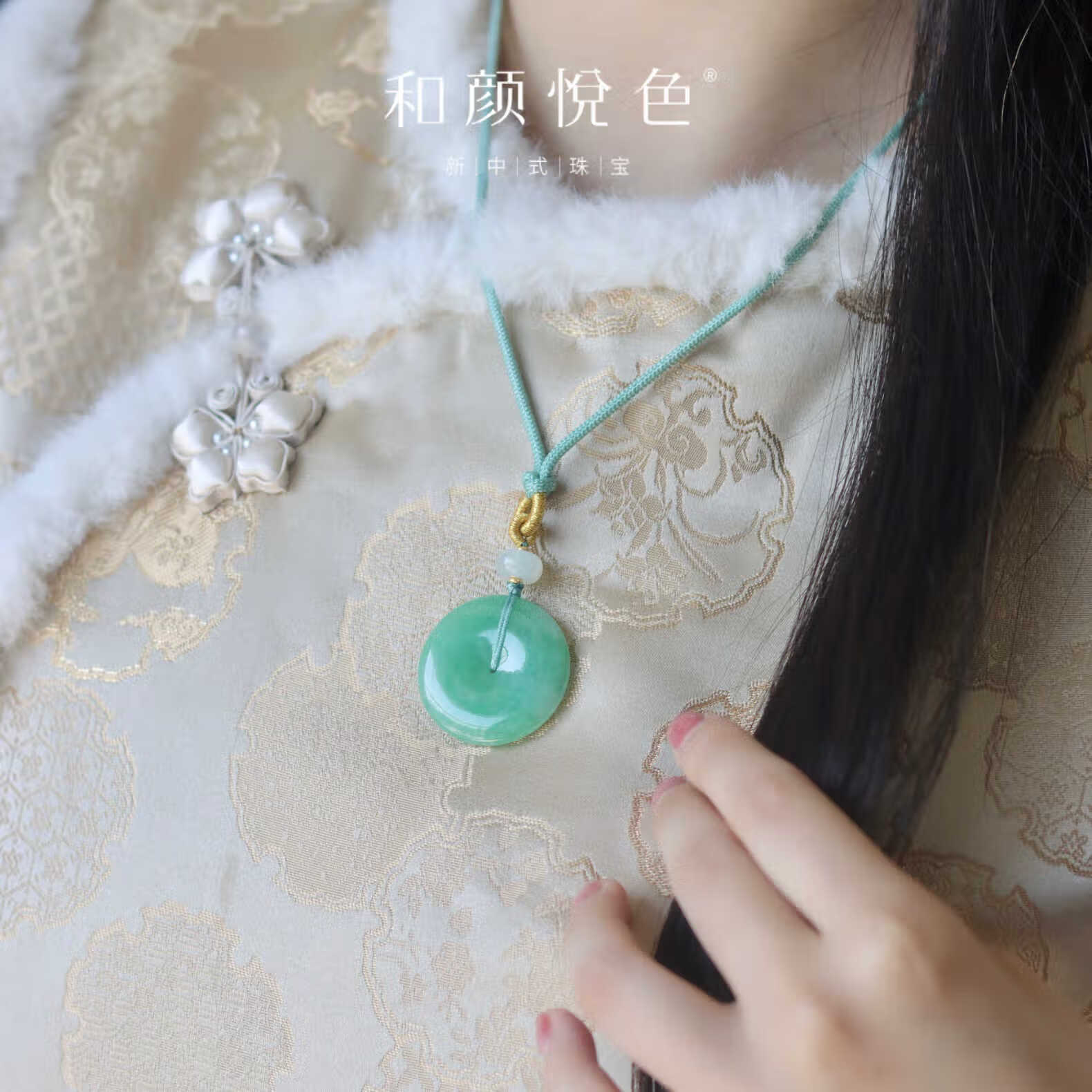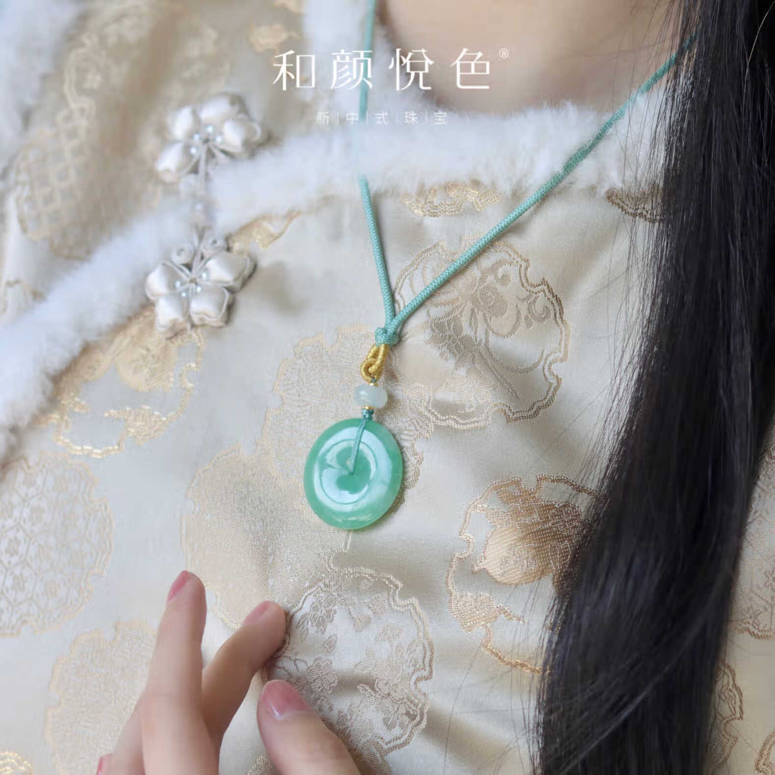 QIWN genuine Myanmar A goods new Chinese style national style peace buckle 18k gold pendant necklace clavicle chain New Year gift jade necklace (main stone 30*5mm)