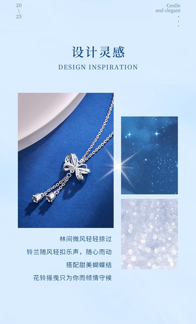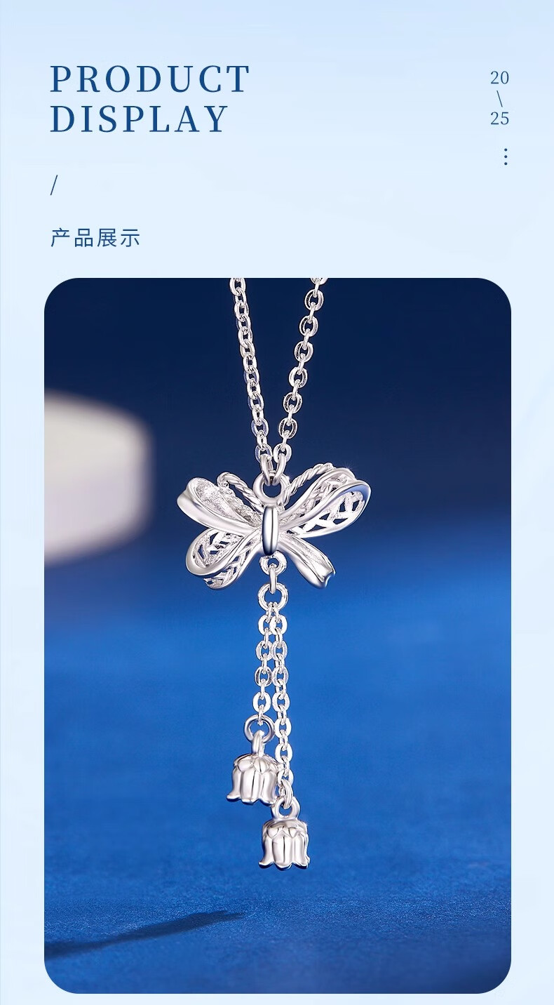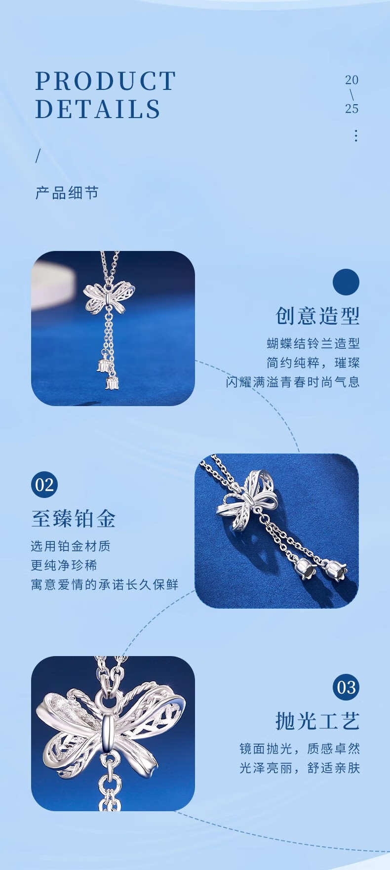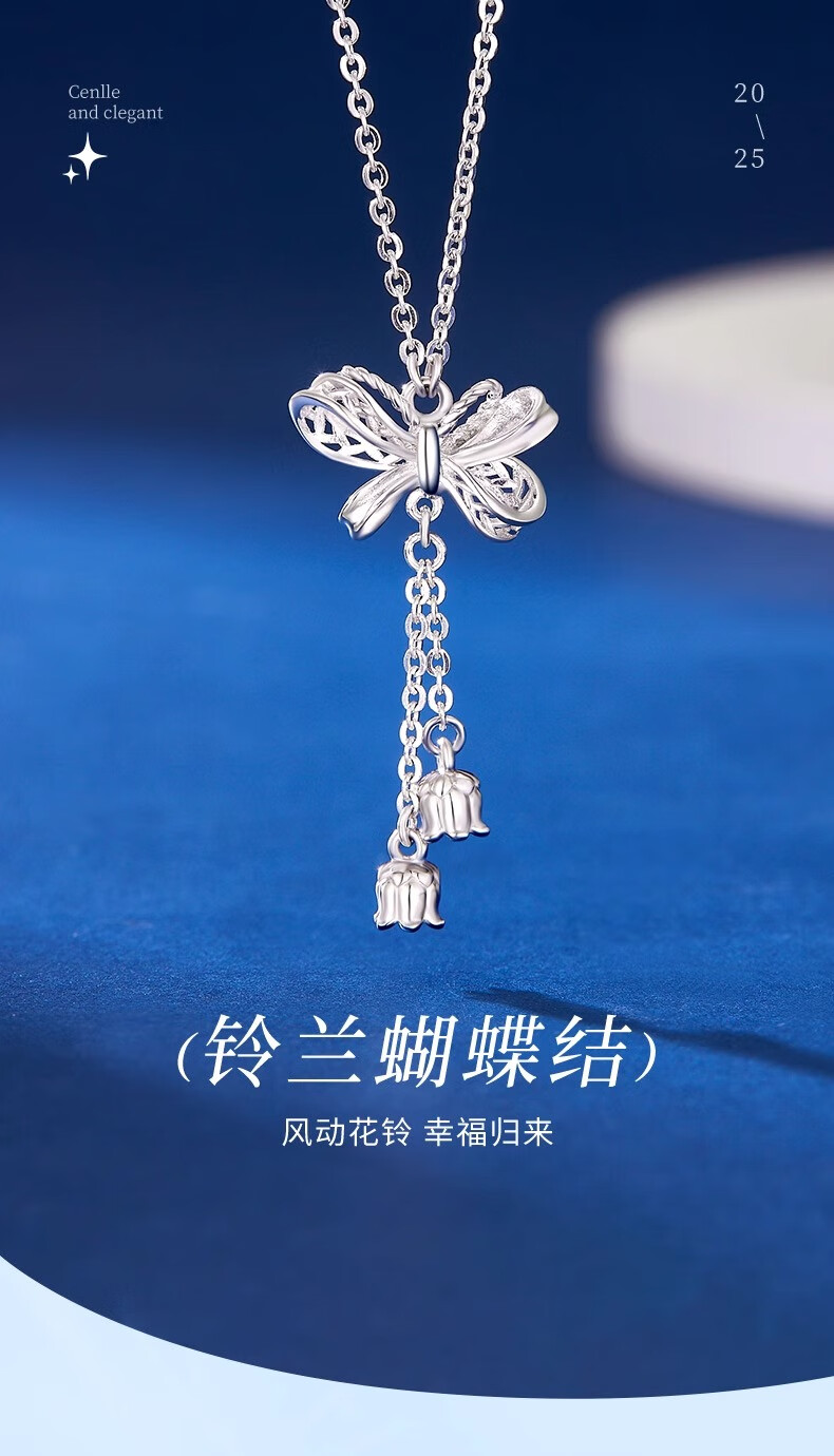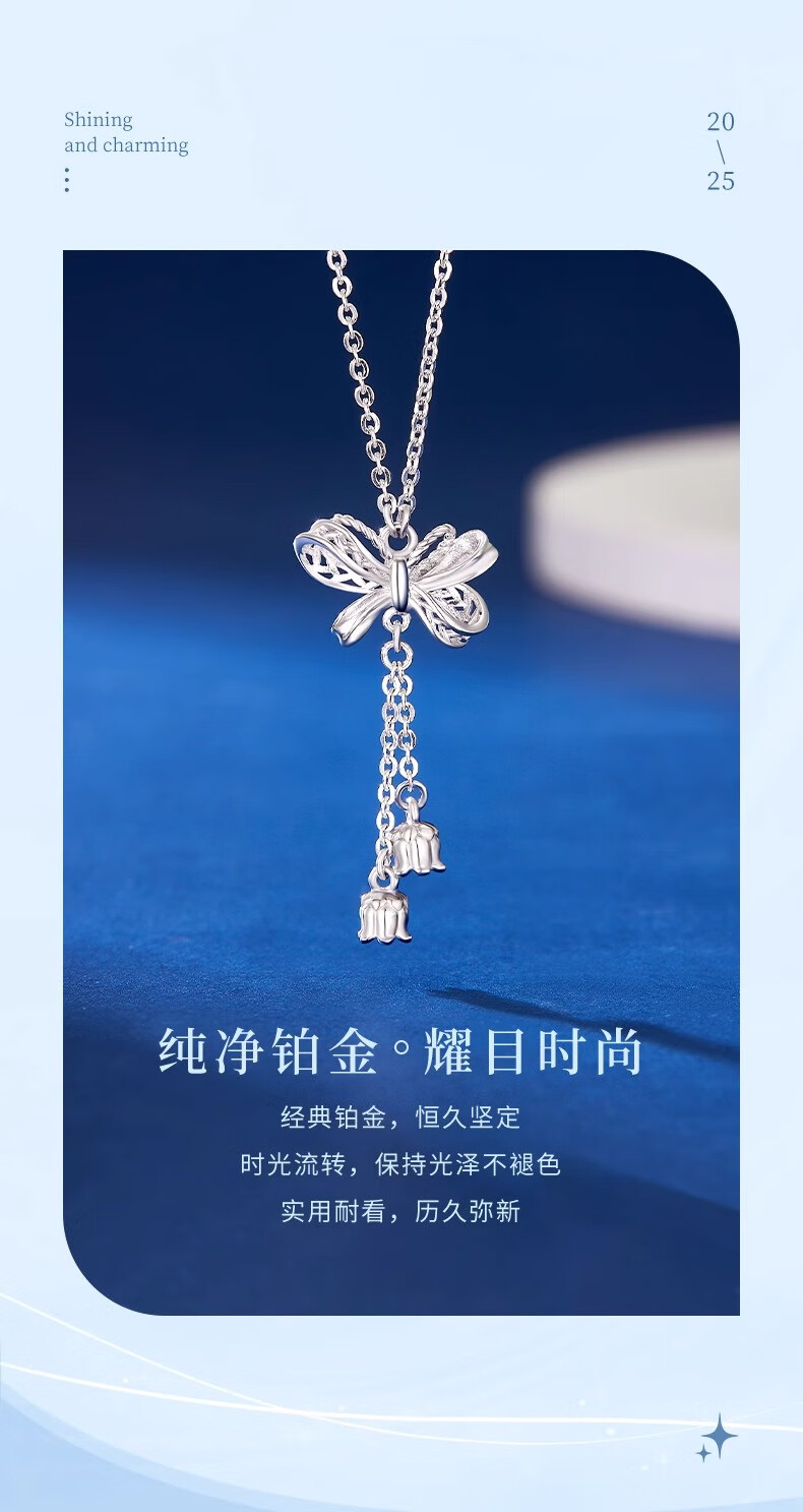 China Gold (CHINA GOLD) PT950 platinum butterfly lily of the valley pendant for women new platinum Valentine's Day birthday gift for girlfriend and wife PT950 platinum butterfly lily of the valley necklace about 7.1g