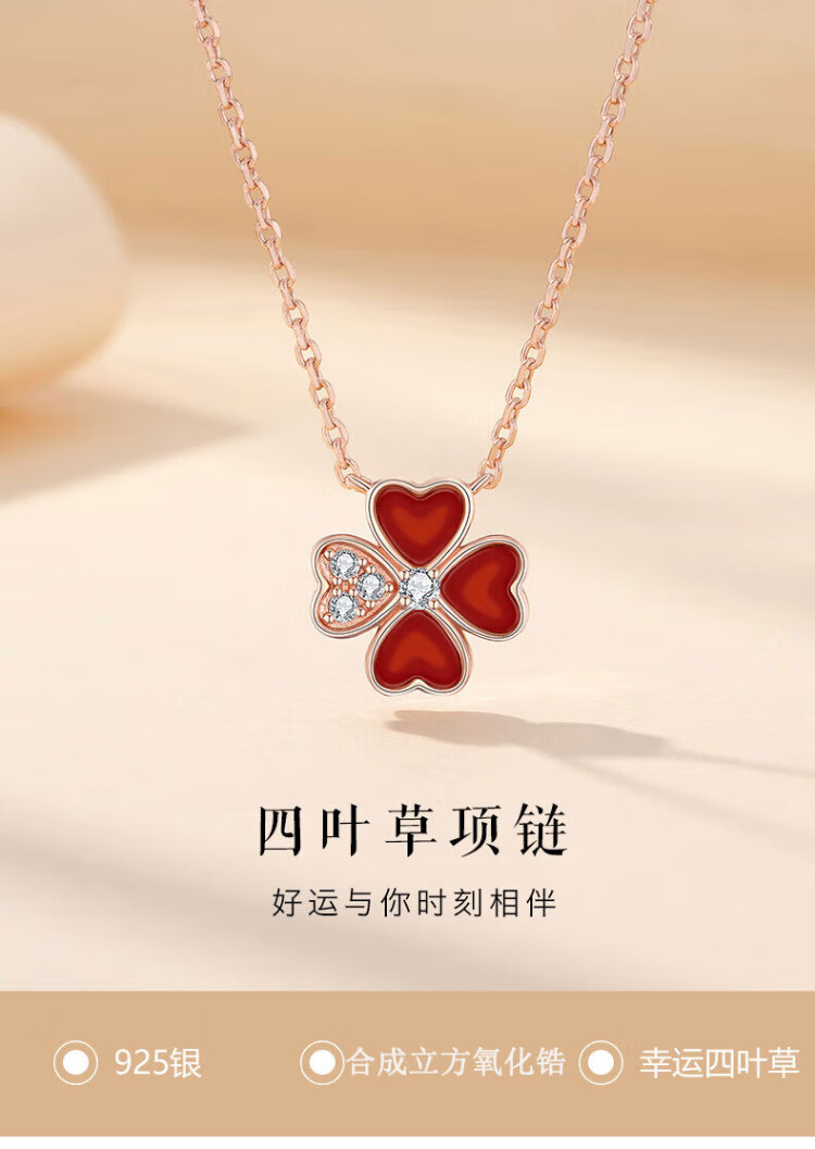 Shiloni's light luxury four-leaf clover necklace for women, niche and high-end, heart-warming Chinese Valentine's Day birthday gift for girlfriend and wife, four-leaf clover red agate necklace + bracelet