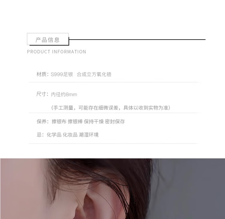 Core luxury sterling silver 999 pure silver earrings for women high-end ear piercing earrings for women plain hoop love earrings for women ear buckles 2025 new 999 pure silver earrings pair