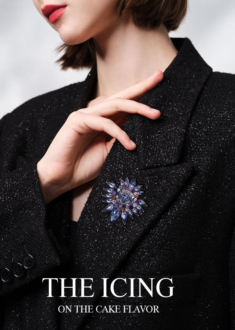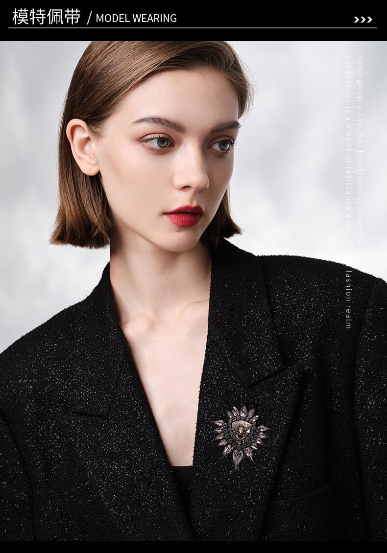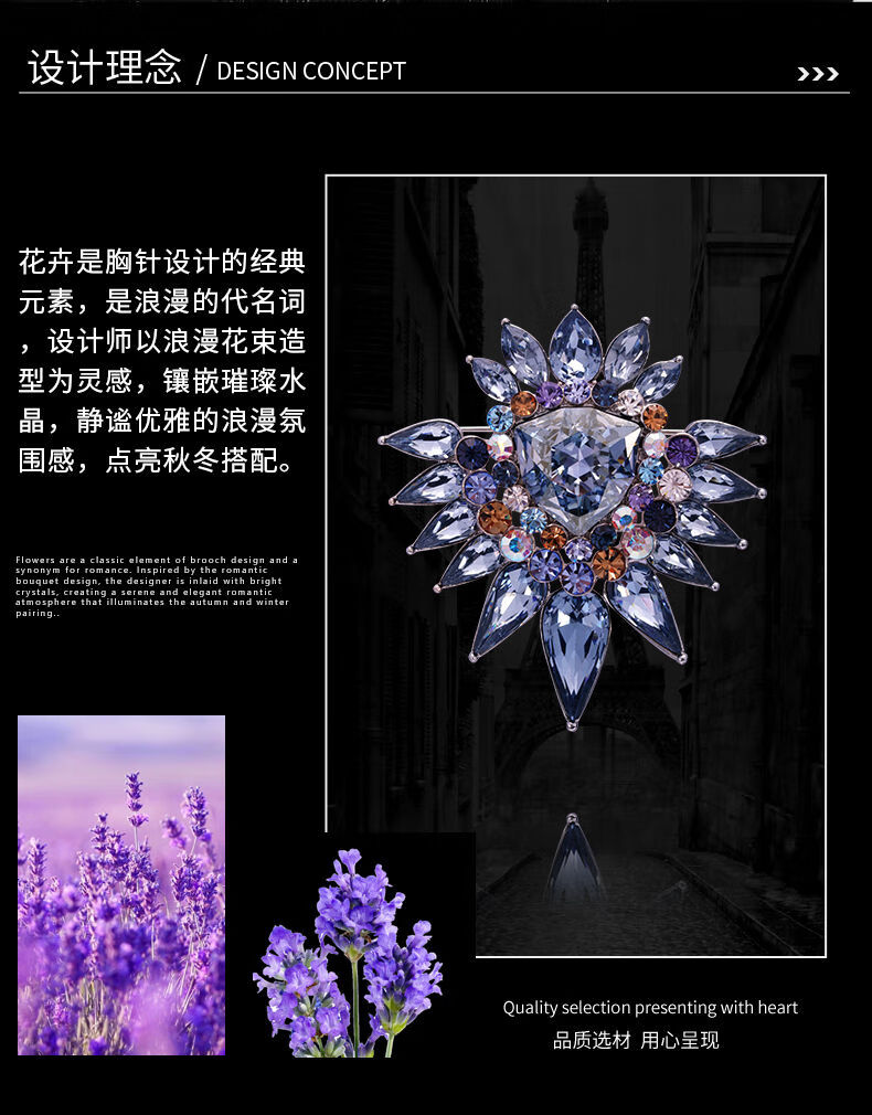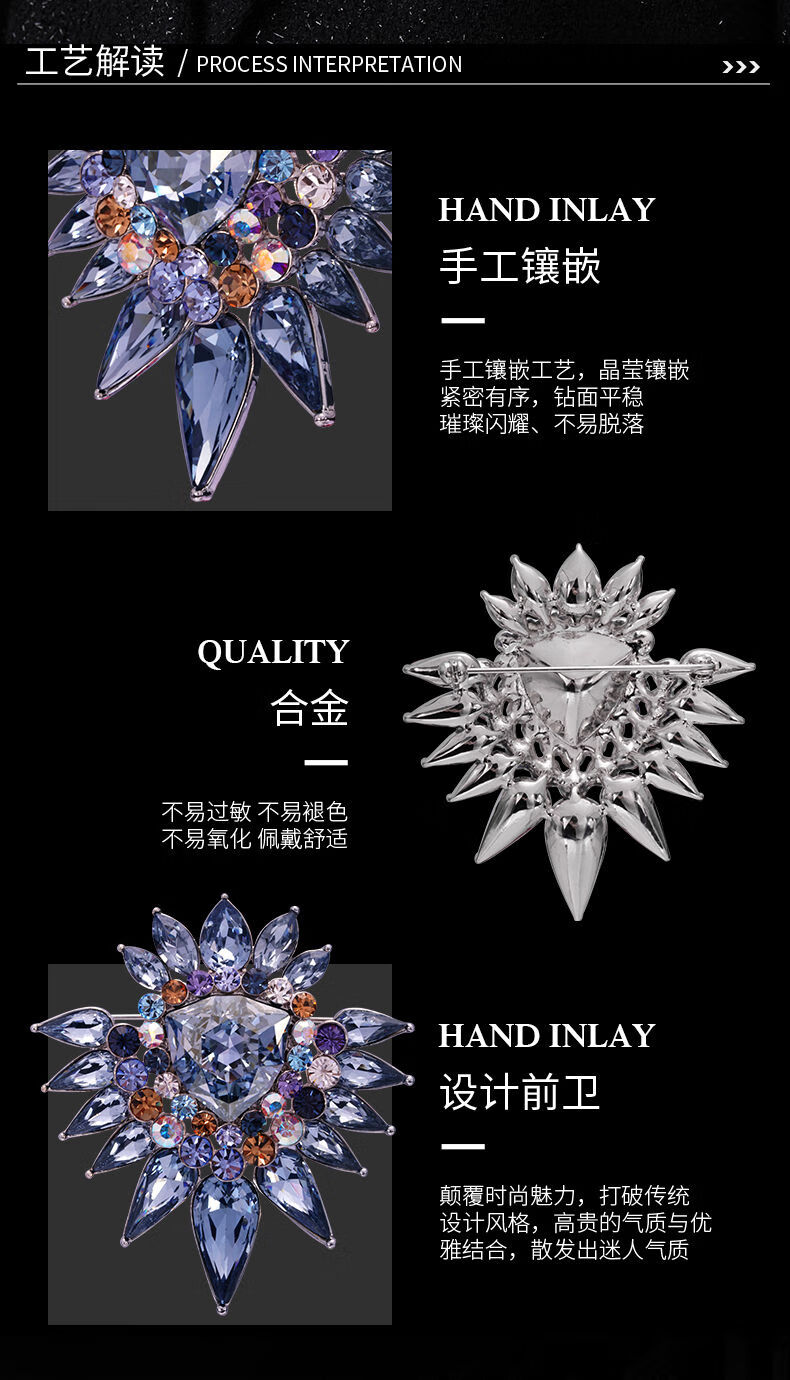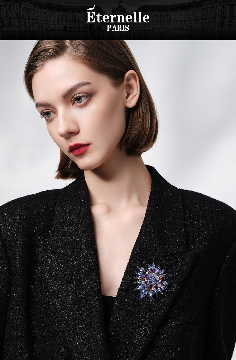 VZZS French eternal luxury brooch has strong design sense for autumn and winter fashion accessories, niche fashion, simple, versatile and high-end, elegant blue