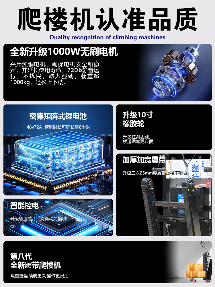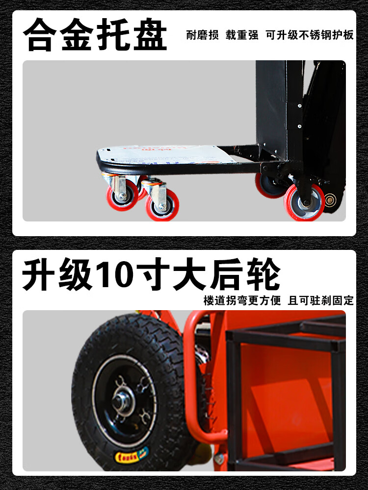 安泰强电动爬楼机轮胎式履带式手推车可折叠家具建材上下楼梯神器搬运车 轮胎支臂48V48A1800W【更省力】
