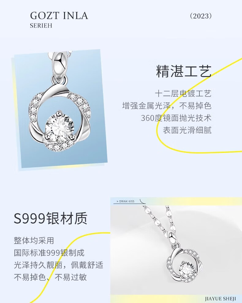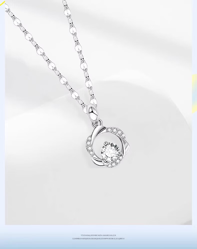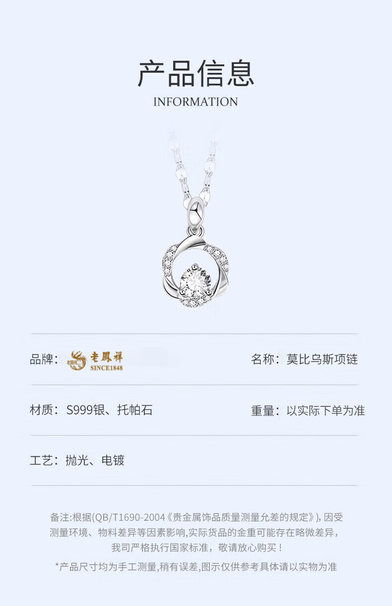 Lao Fengxiang Möbius Ring Necklace Pure Silver 999 Light Luxury Niche Pure Silver Necklace Female Birthday Gift for Girlfriend and Wife Jingsuda/999 Silver-Möbius Ring Zircon Necklace* Gift Box