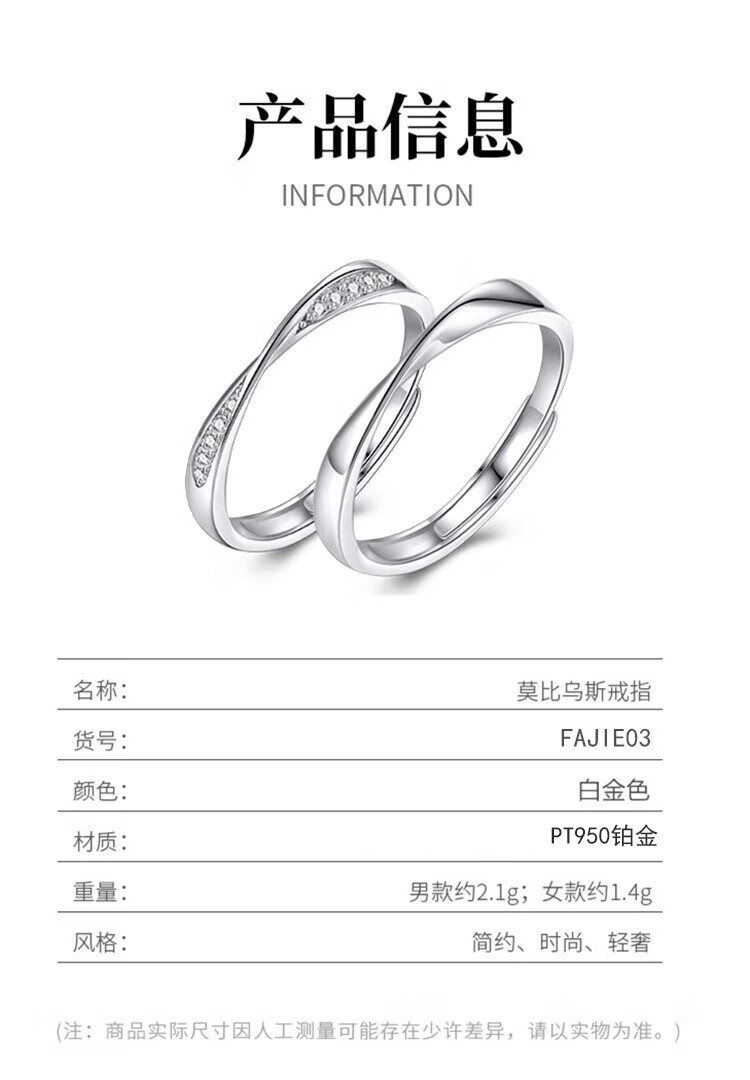 Faco Mobius Couple PT950 Platinum Ring Adjustable Ring Proposal Ring Chinese Valentine's Day Birthday Platinum Model-Single Ring Order Remarks Men and Women