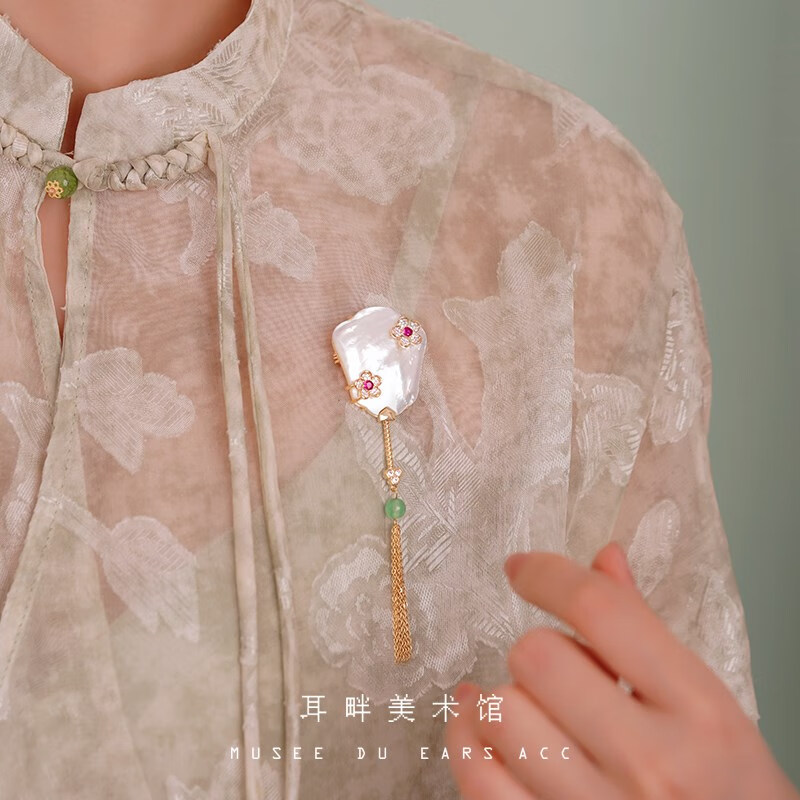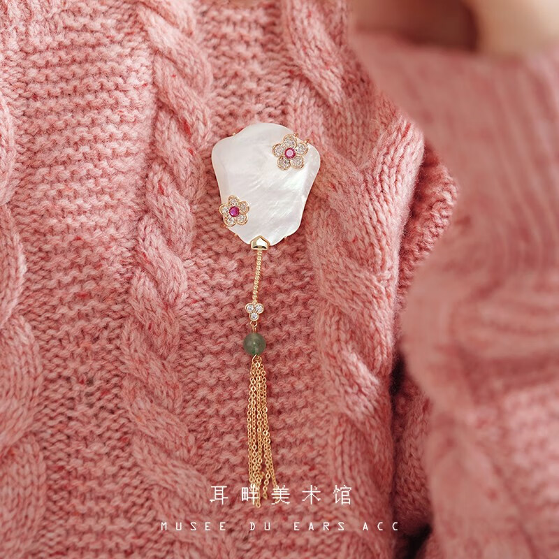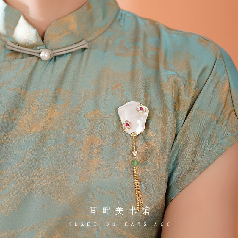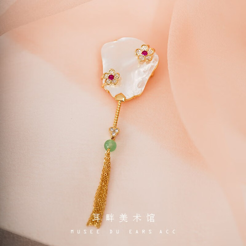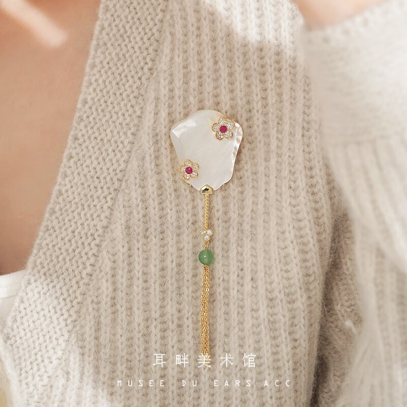 Only double A natural mother-of-pearl exquisite banana fan brooch women's new Chinese style ancient style light luxury high-end niche design banana fan brooch