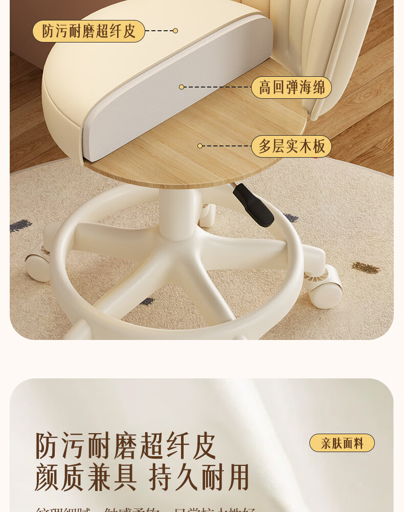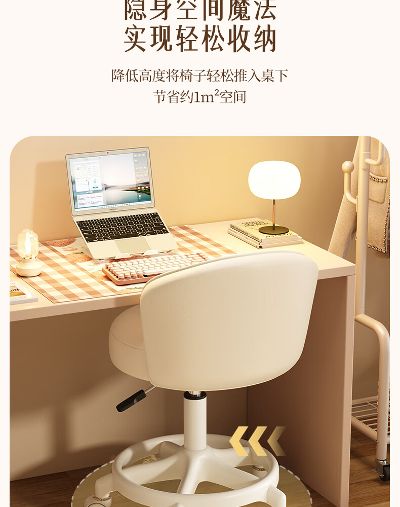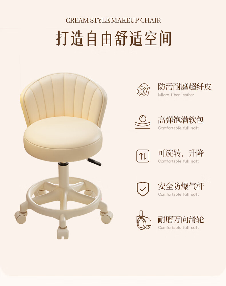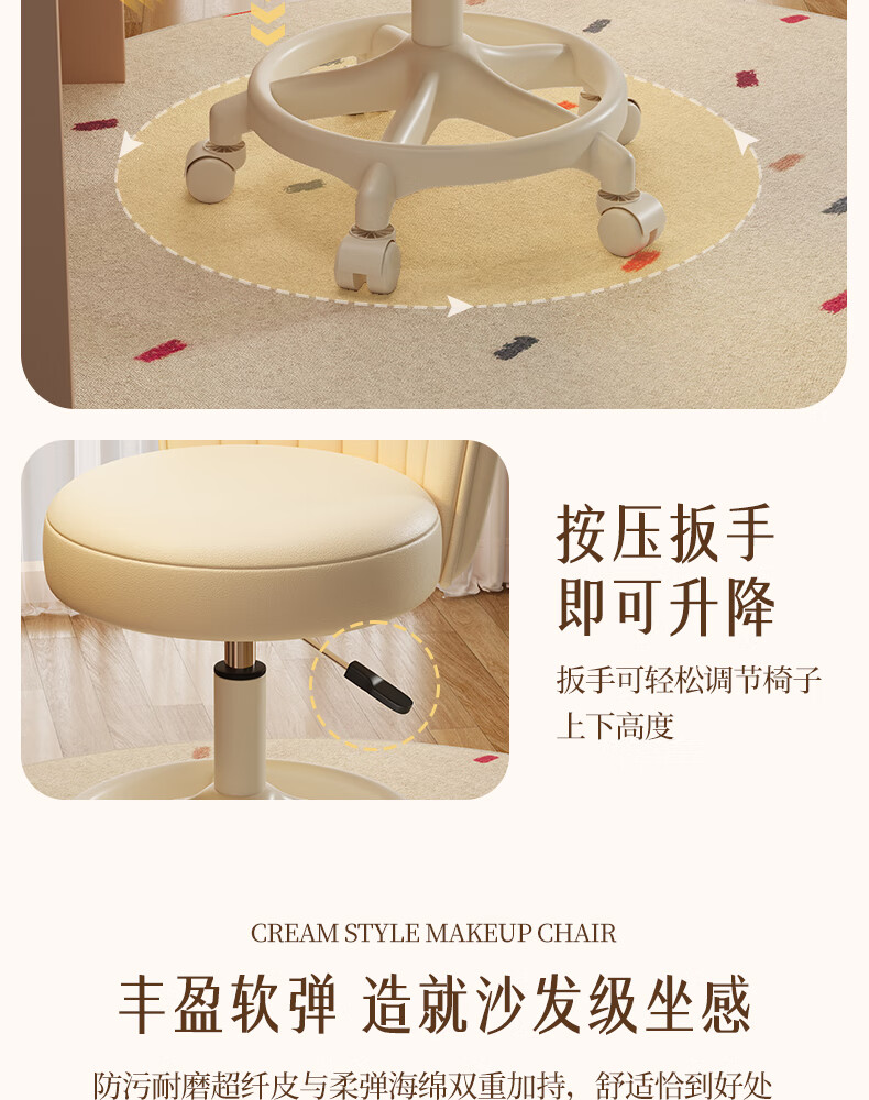 Makeup Stool Rotatable Cream Style Makeup Chair Home Chair Back Dressing Stool Girls' Bedroom Lift Rotating Upgraded Quality Lime Green-Three-Proof Microfiber Leather