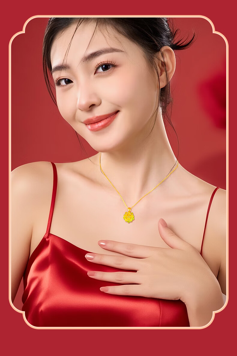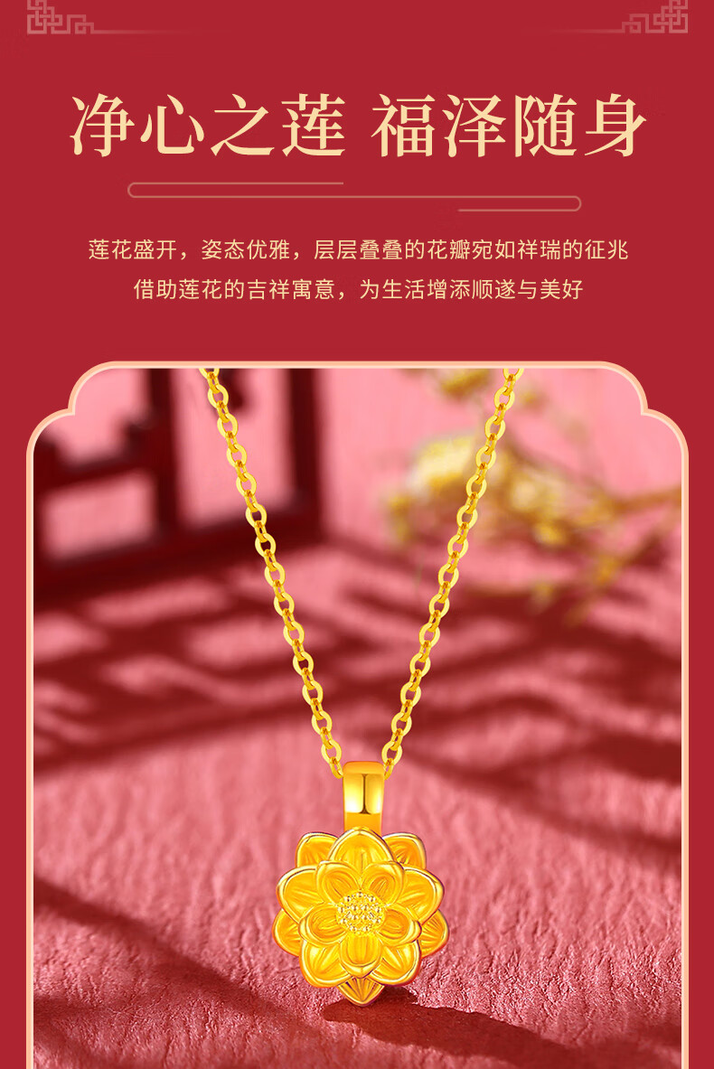 Lao Fengxiang Good Luck Lotus Gold Necklace for Women 18K Gold Pendant Wedding Anniversary Gift for Girlfriend and Wife’s Birthday 18k Lotus Pendant + Free 925 Silver Chain