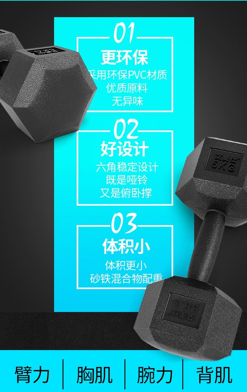 Zhizhou hexagonal dumbbell men's fitness student 2kg 5kg household 10kg rubber-coated arm training female fitness equipment total weight a pair 12Jin Jin equals 0.5kg (6Jin Jin equals 0.5kg *2 pieces)
