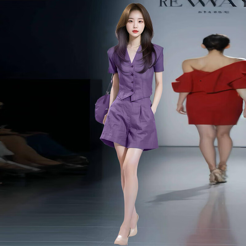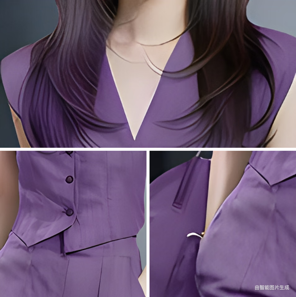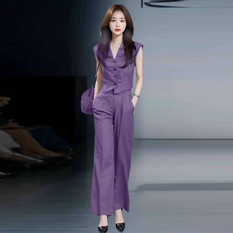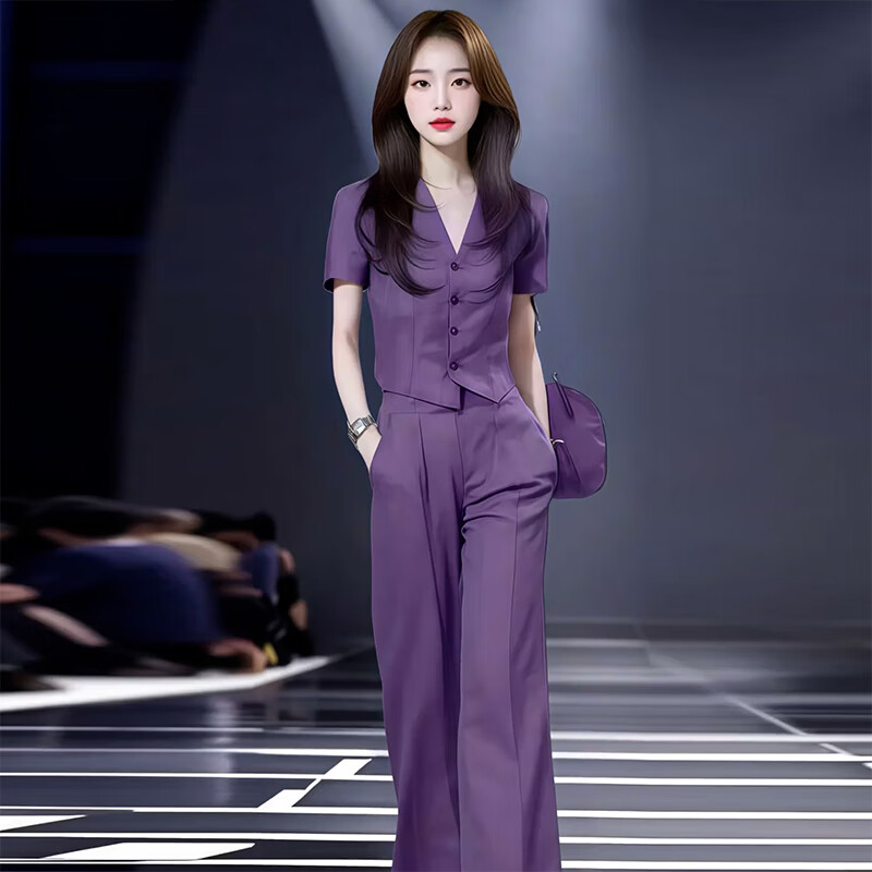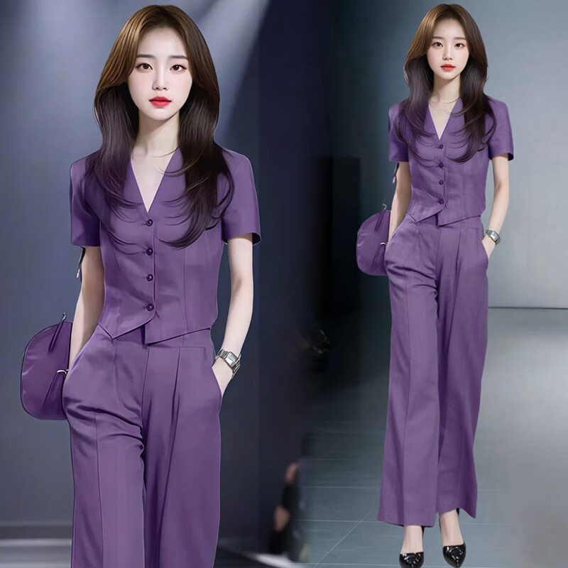 Xin Yimei suit suit women's thin 2026 summer new style slim V-neck sleeveless top wide-leg pants two-piece set purple short-sleeved top + purple trousers (set) M 95-110Jin Jin equals 0.5 kg