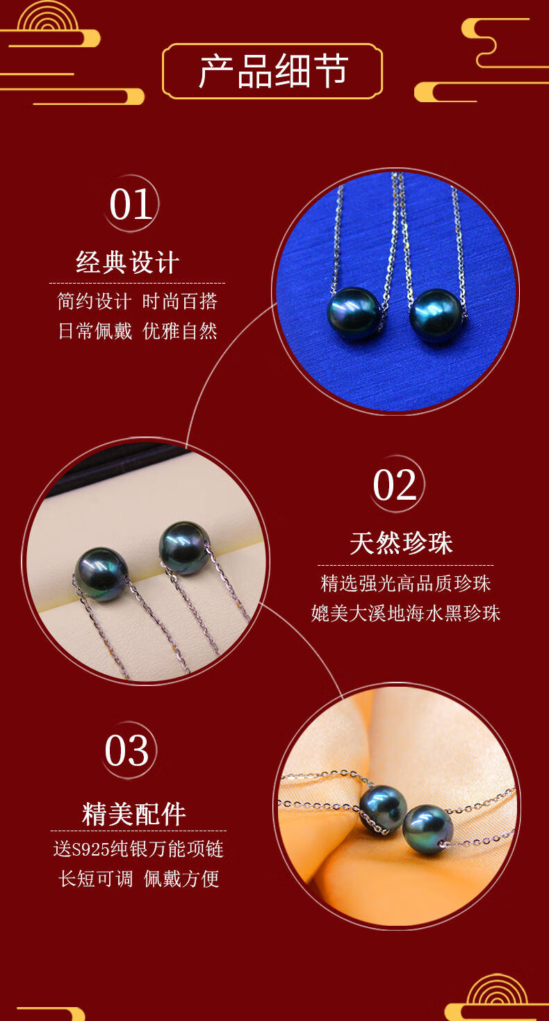 VZZS light luxury natural freshwater black pearl Passepartout single pendant necklace is comparable to Tahitian sterling silver real pearl necklace Passepartout pearl pendant free sterling silver necklace 4-5mm45cm