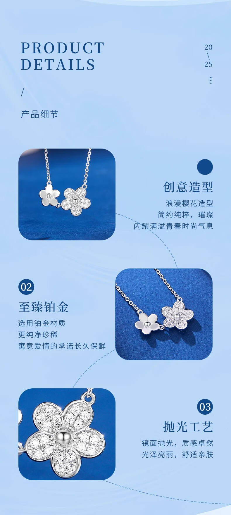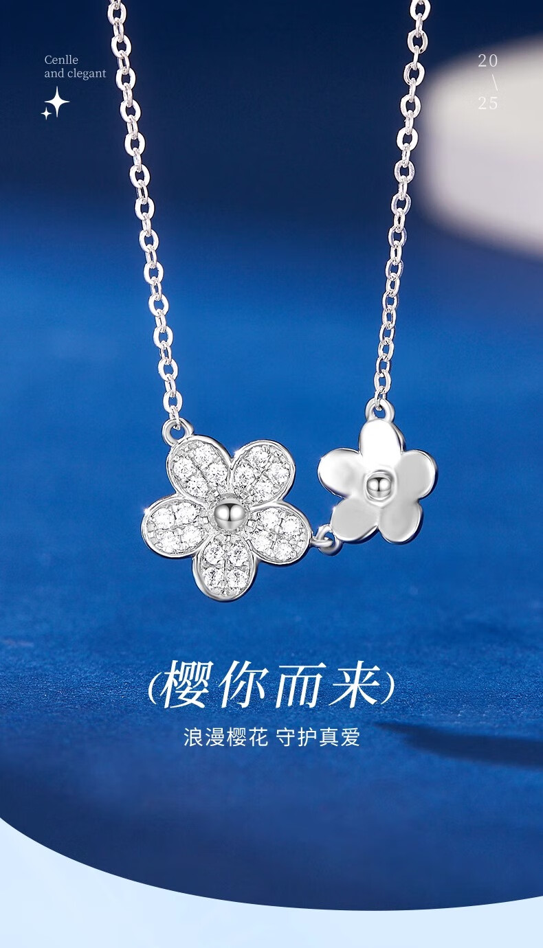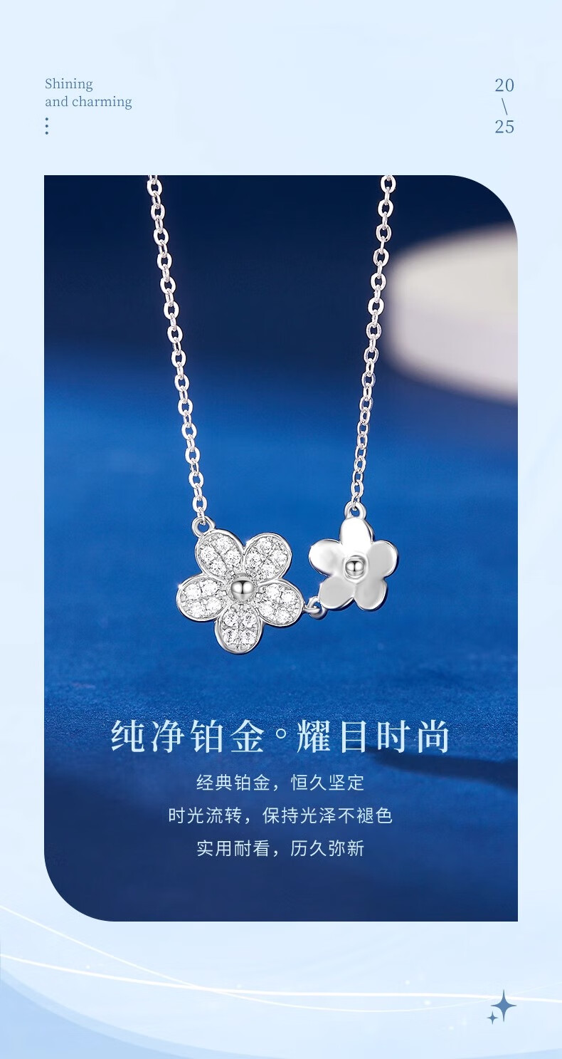 China Gold (CHINA GOLD) PT950 platinum cherry blossom flower pendant women's platinum necklace Valentine's Day practical birthday gift for girlfriend and wife PT950 platinum cherry blossom flower necklace about 4.6g