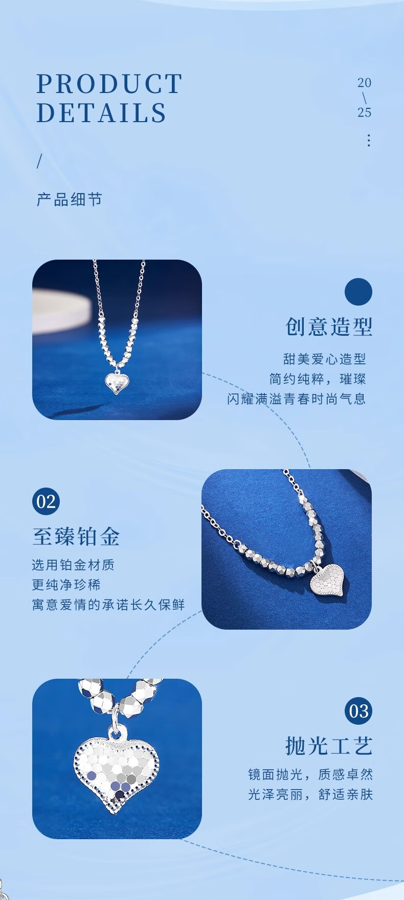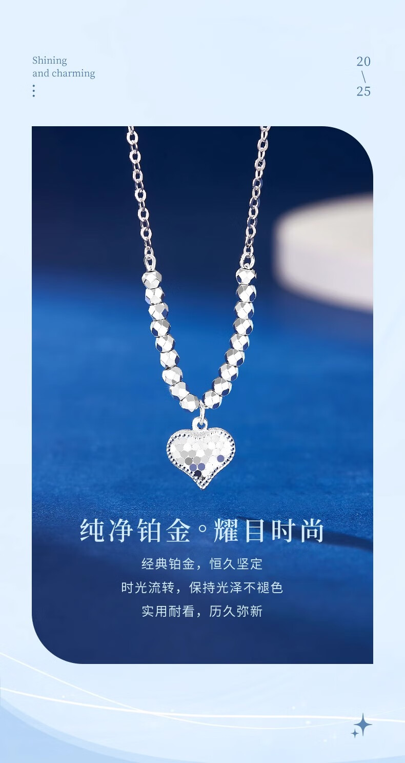 China Gold (CHINA GOLD) PT950 Platinum Heartbeat Pendant Women's Platinum Love Necklace Practical Valentine's Day Birthday Gift for Girlfriend PT950 Platinum Love Necklace About 5.1g