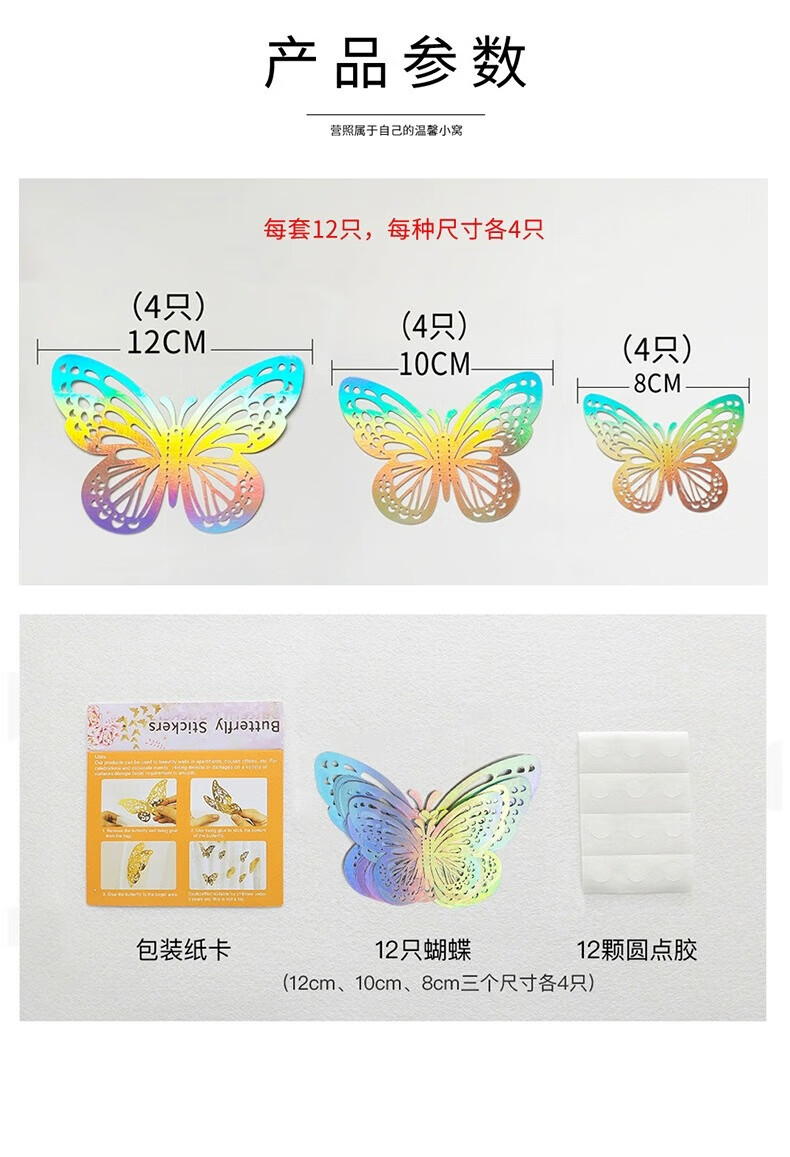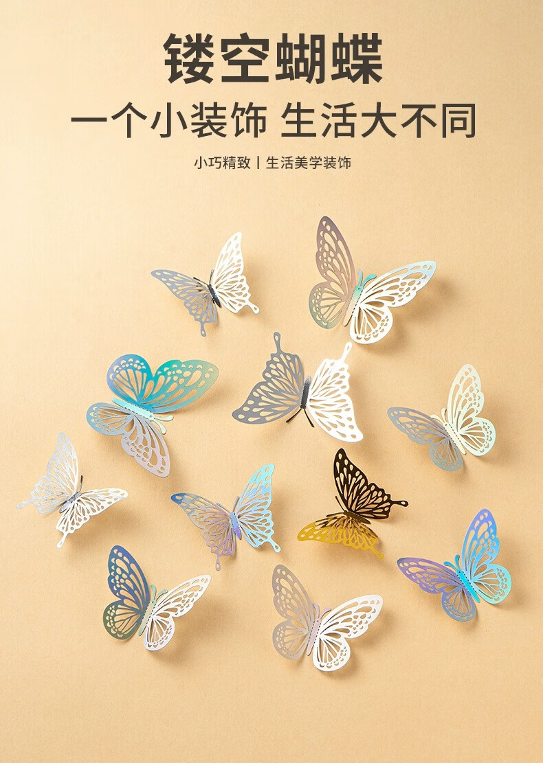 Star rudder 3D colorful hollow butterfly decorative wall stickers laser silver butterflies 2 sets/24 pieces assembled with glue dispensing