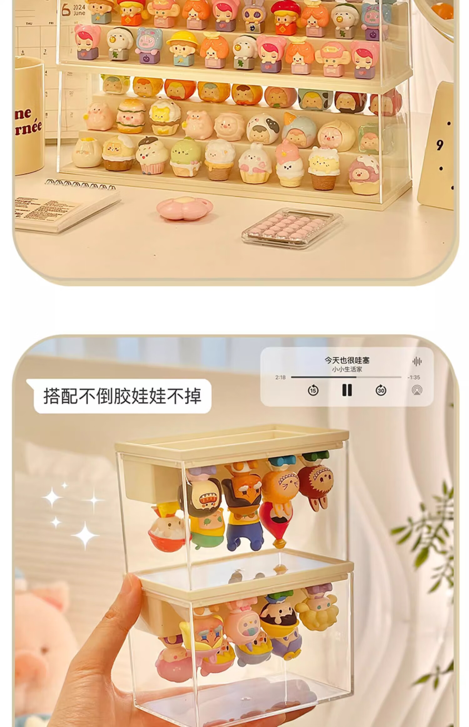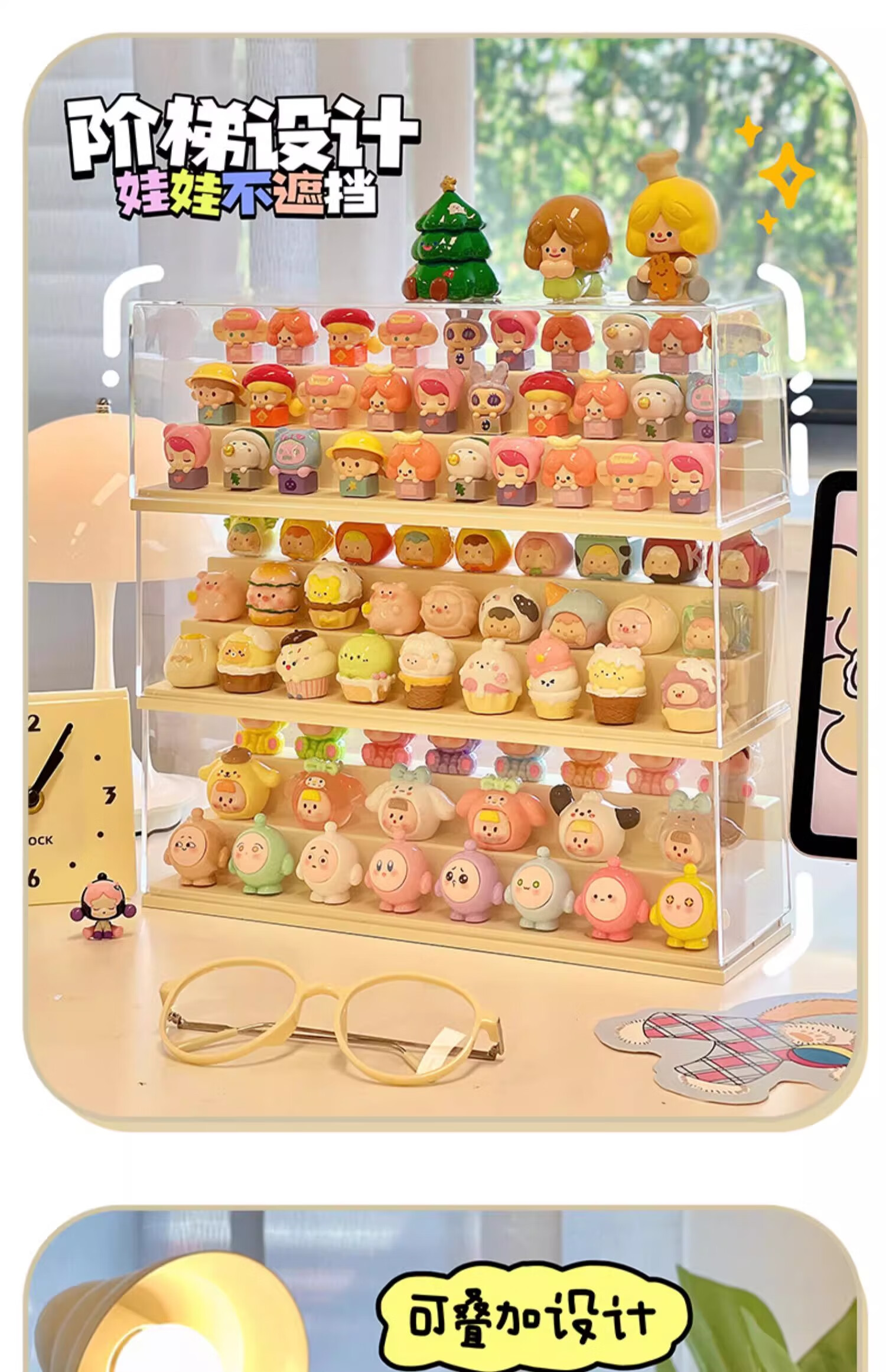Yingsi style cute display box blind box display rack to store small ornaments hand-made display cabinet acrylic transparent dust-proof storage box large custard 2 pieces