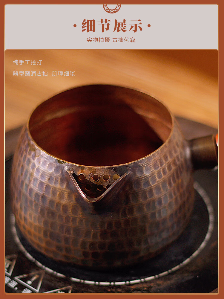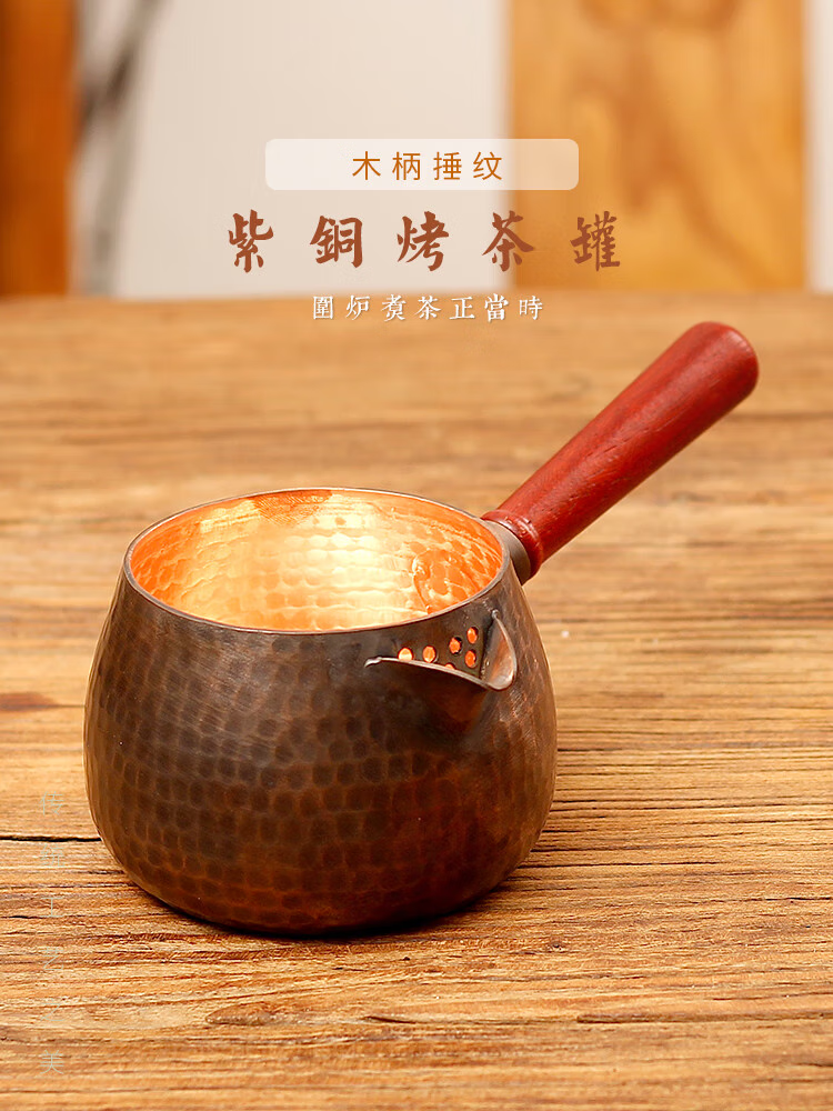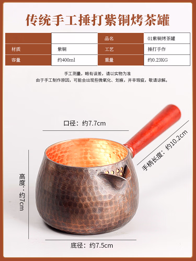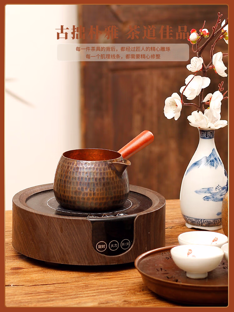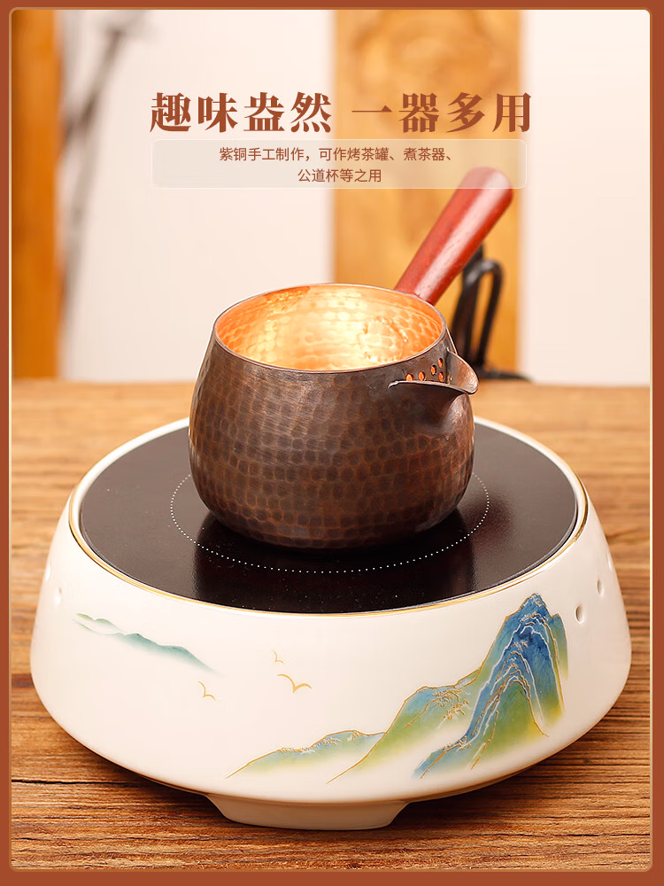 Runhuanian pure handmade hammered pure copper roasted tea cans, roasted milk cans, teapots, electric stoves and stoves for making tea, household tea making, 4001 cans + 1000 watt imitation wood grain electric ceramic stove 0ml