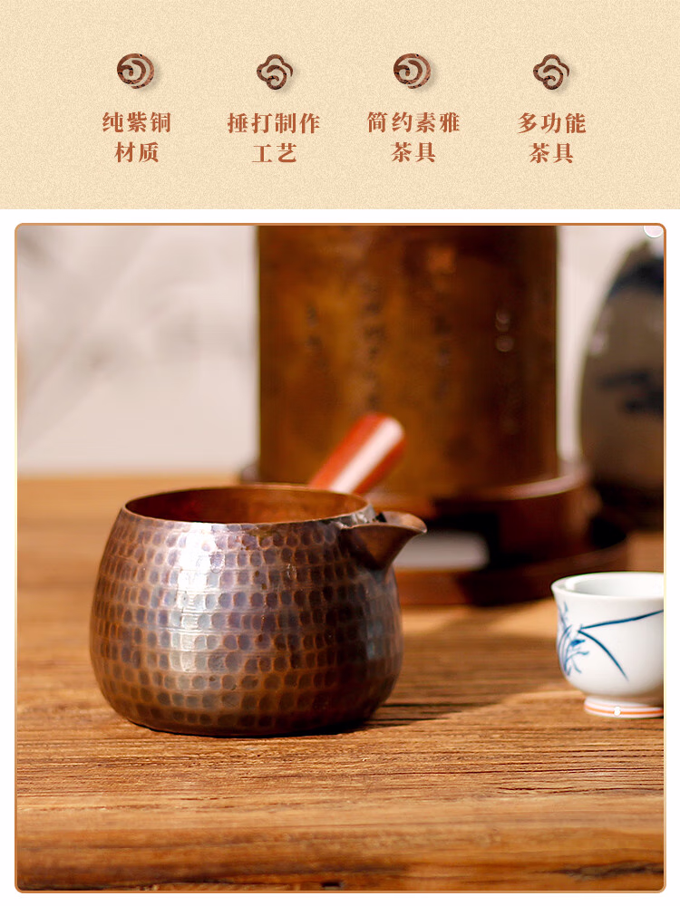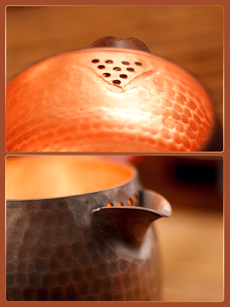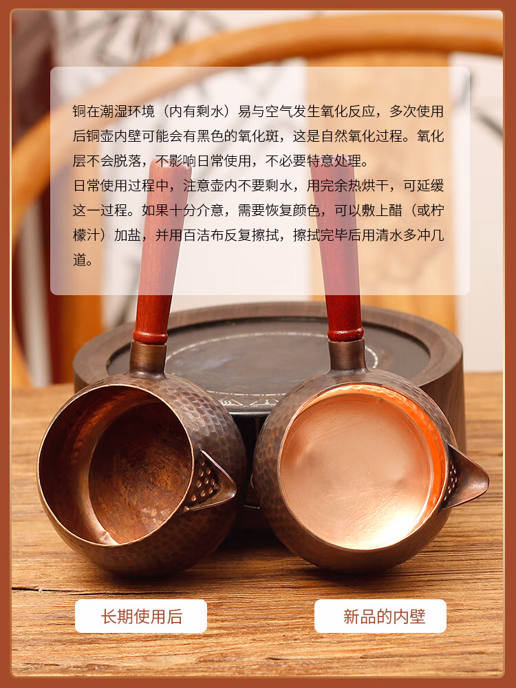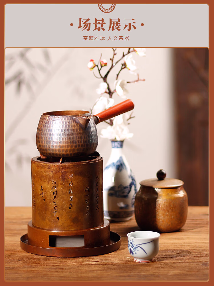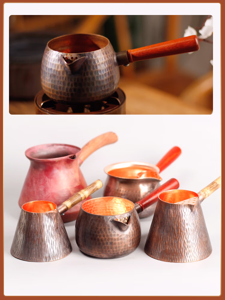 Runhuanian pure handmade hammered pure copper roasted tea cans, roasted milk cans, teapots, electric stoves and stoves for making tea, household tea making, 4001 cans + 1000 watt imitation wood grain electric ceramic stove 0ml