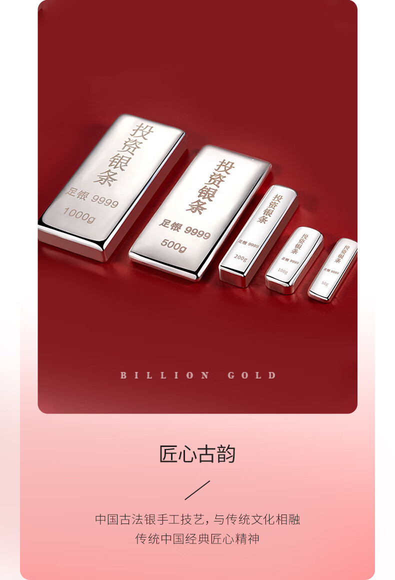 Bank of China Billion Gold Pure Silver 9999 Pure Silver Investment Silver Bar Silver Brick Silver Ingot Silver Nugget Broken Silver Collection Stored Value for Holiday Gifts 50g Official Authentic One-item One-Certificate