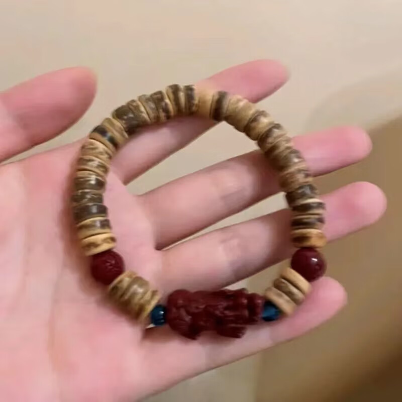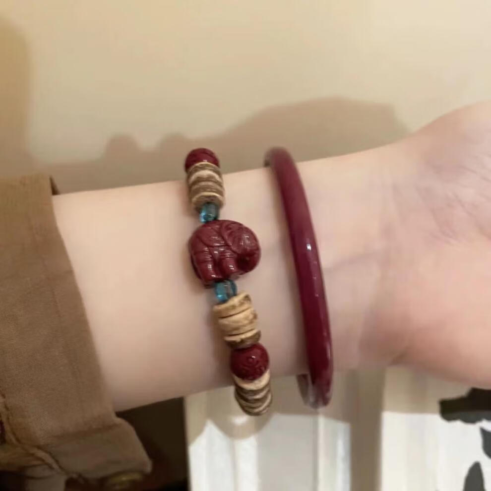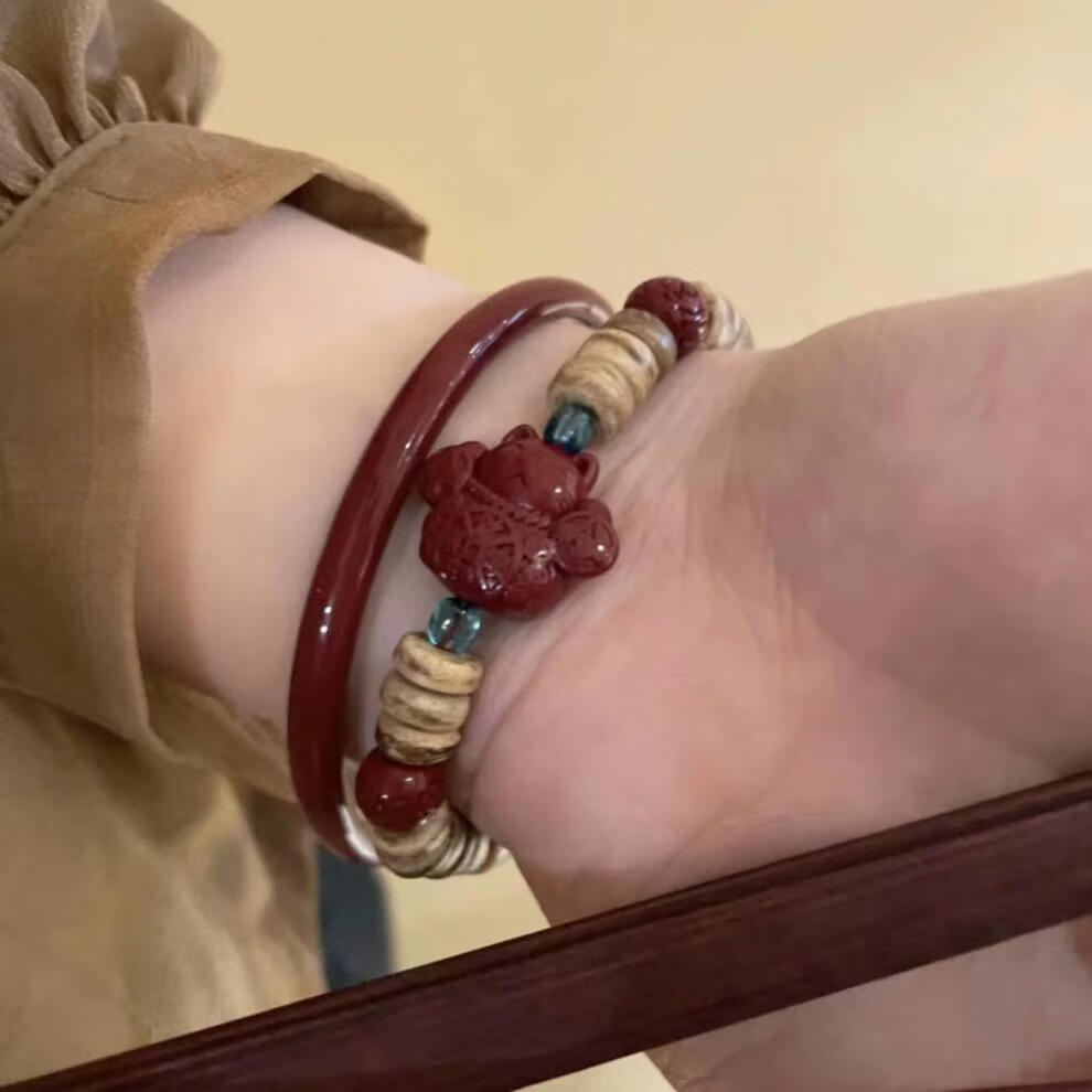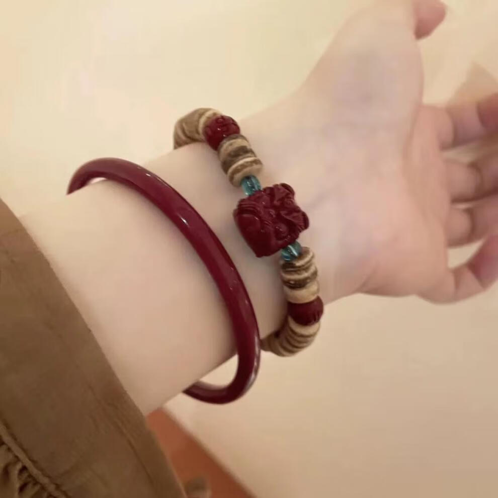 ROSENA SAMMI New Chinese Cinnabar Bracelet Wooden Pixiu Bracelet Versatile Retro National Trend Jewelry Pixiu Bracelet Two-piece Set