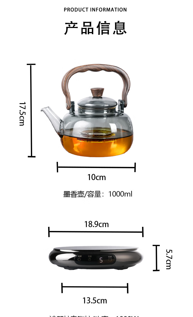 Gaoming high temperature resistant tea kettle for home use ultra-thin electric ceramic stove for tea drinking special thickened handle kettle new glass tea set anti-scald handle kettle + ultra-thin electric ceramic stove 1000ml