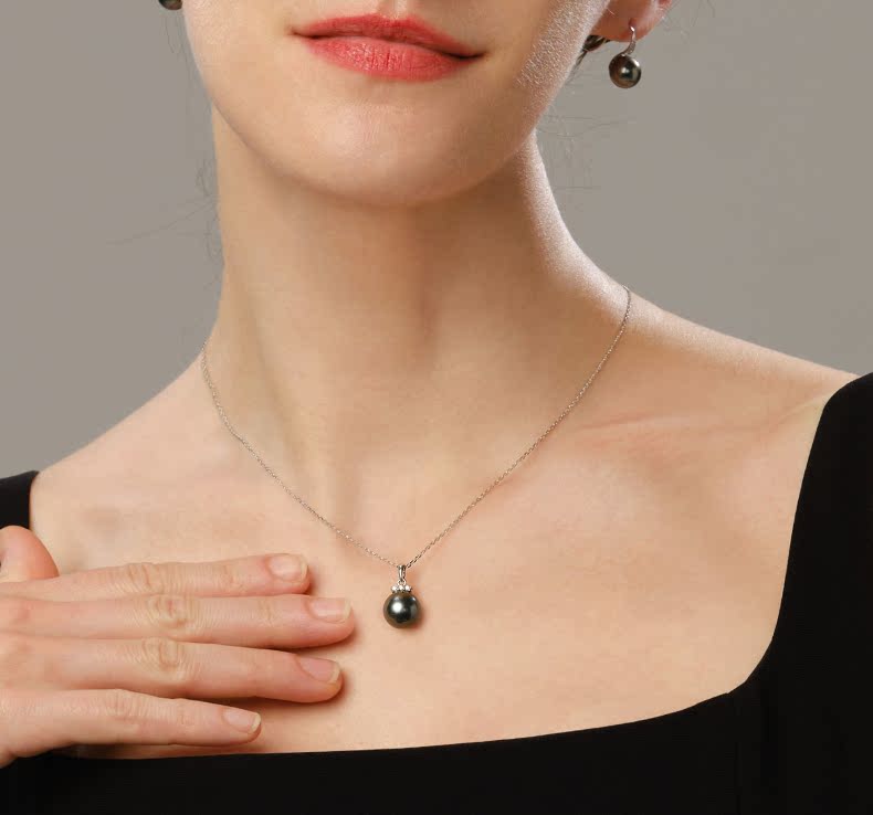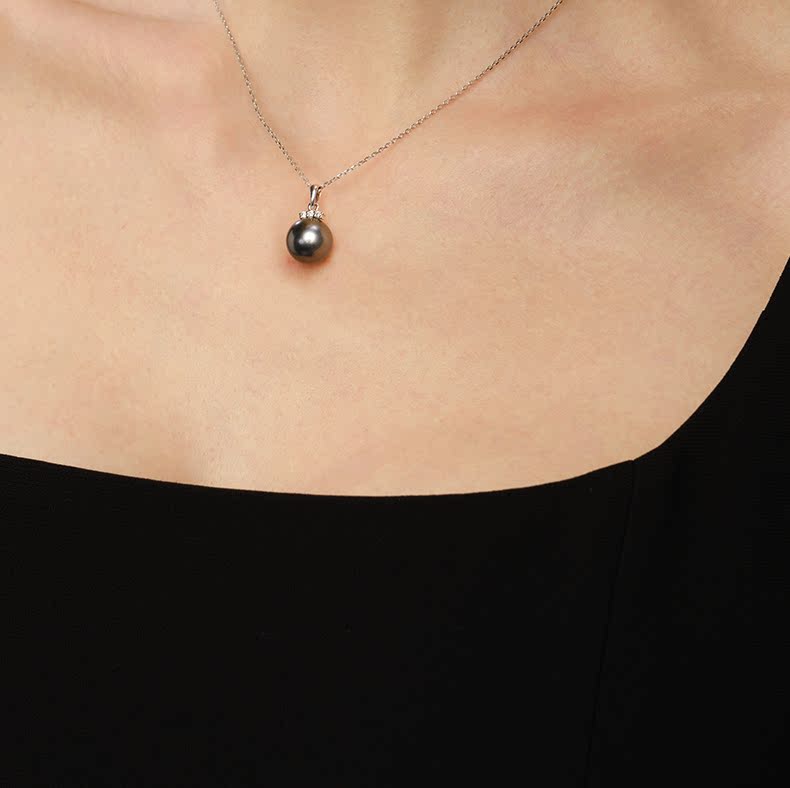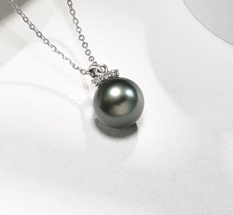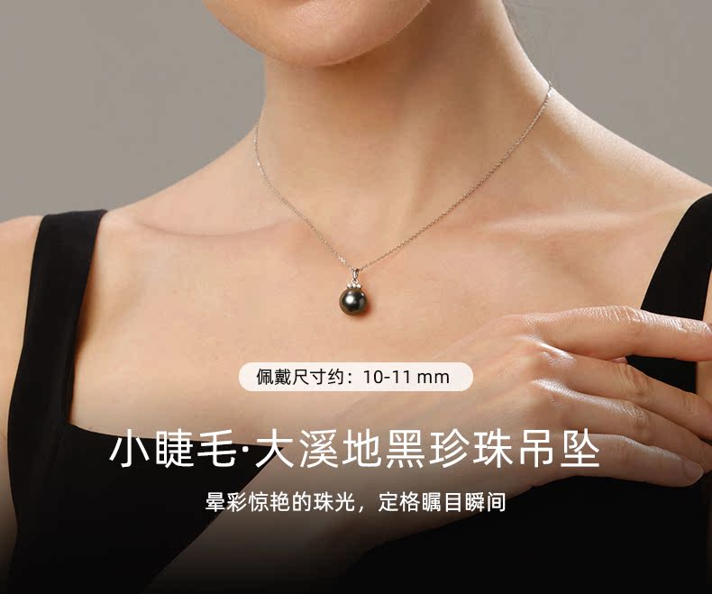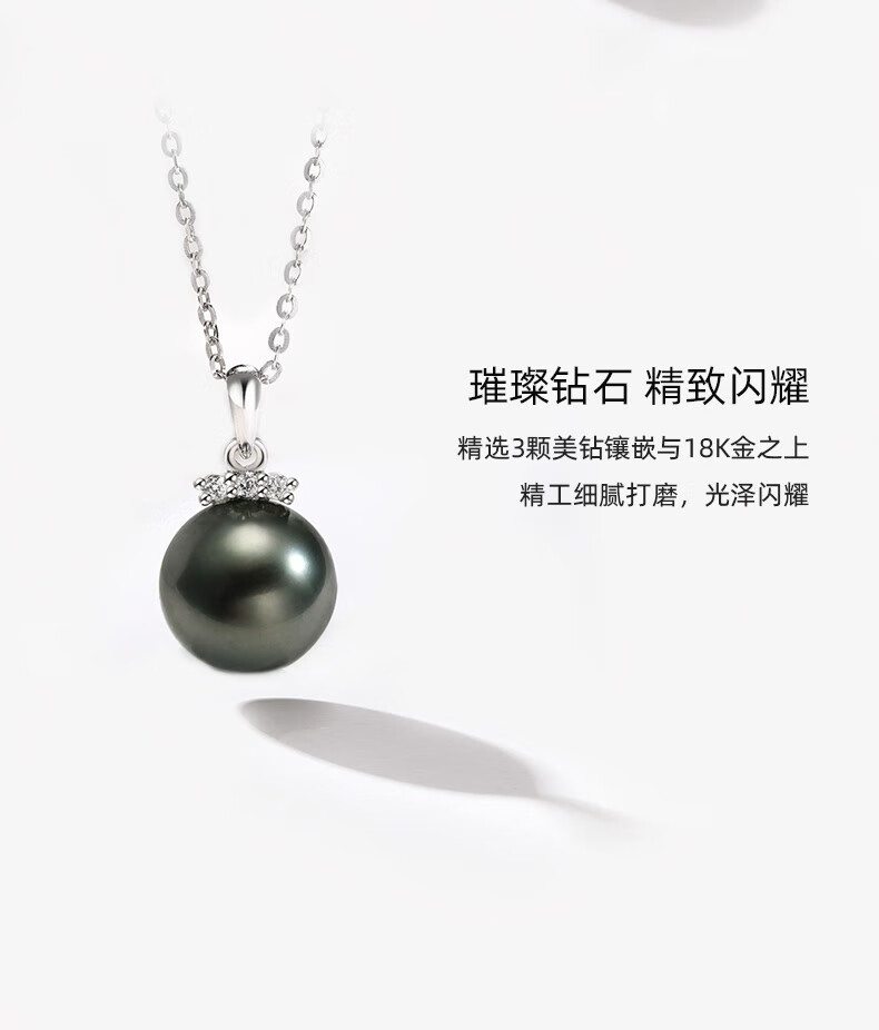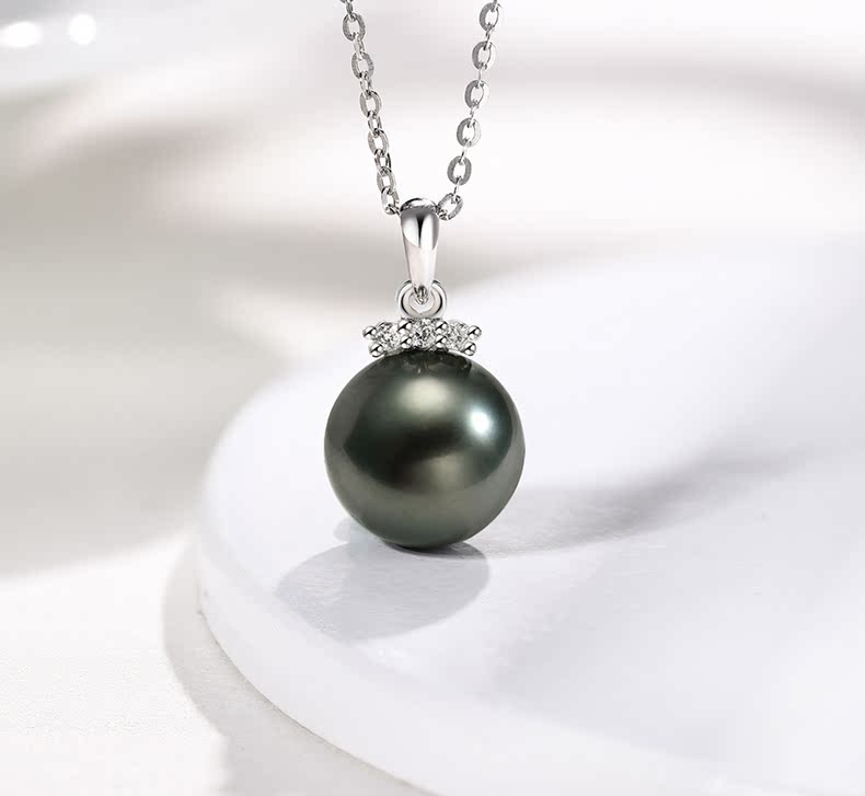 Micro-Gift Tahitian Black Pearl Pendant 18K Gold Diamond Necklace Light Luxury Jewelry Necklace Clavicle Chain Gift for Girlfriend S Grade Perfect Round/Flawless with S925 Silver Cross 10-11mm