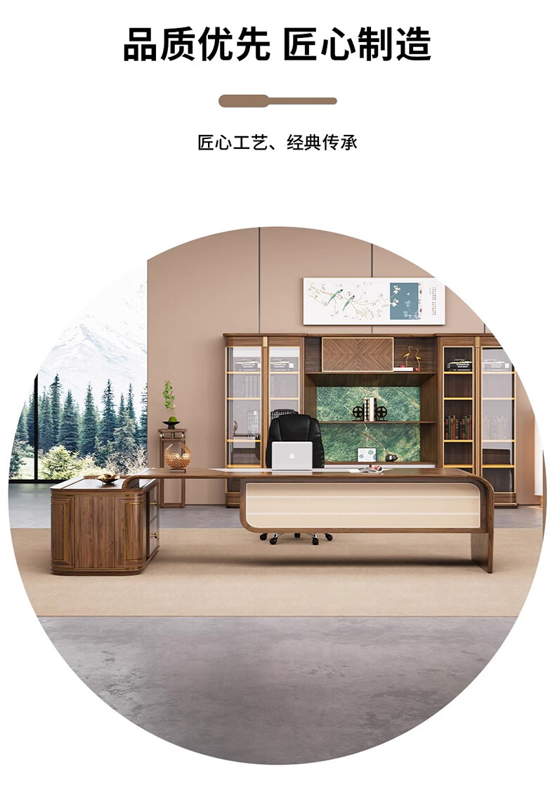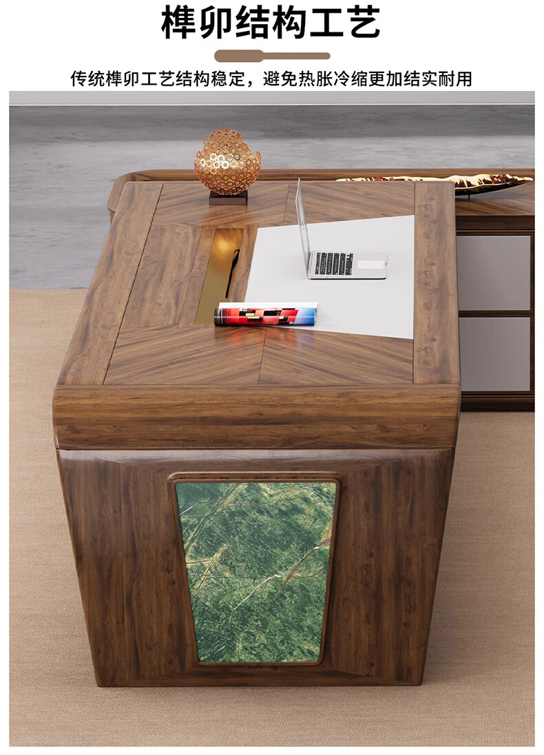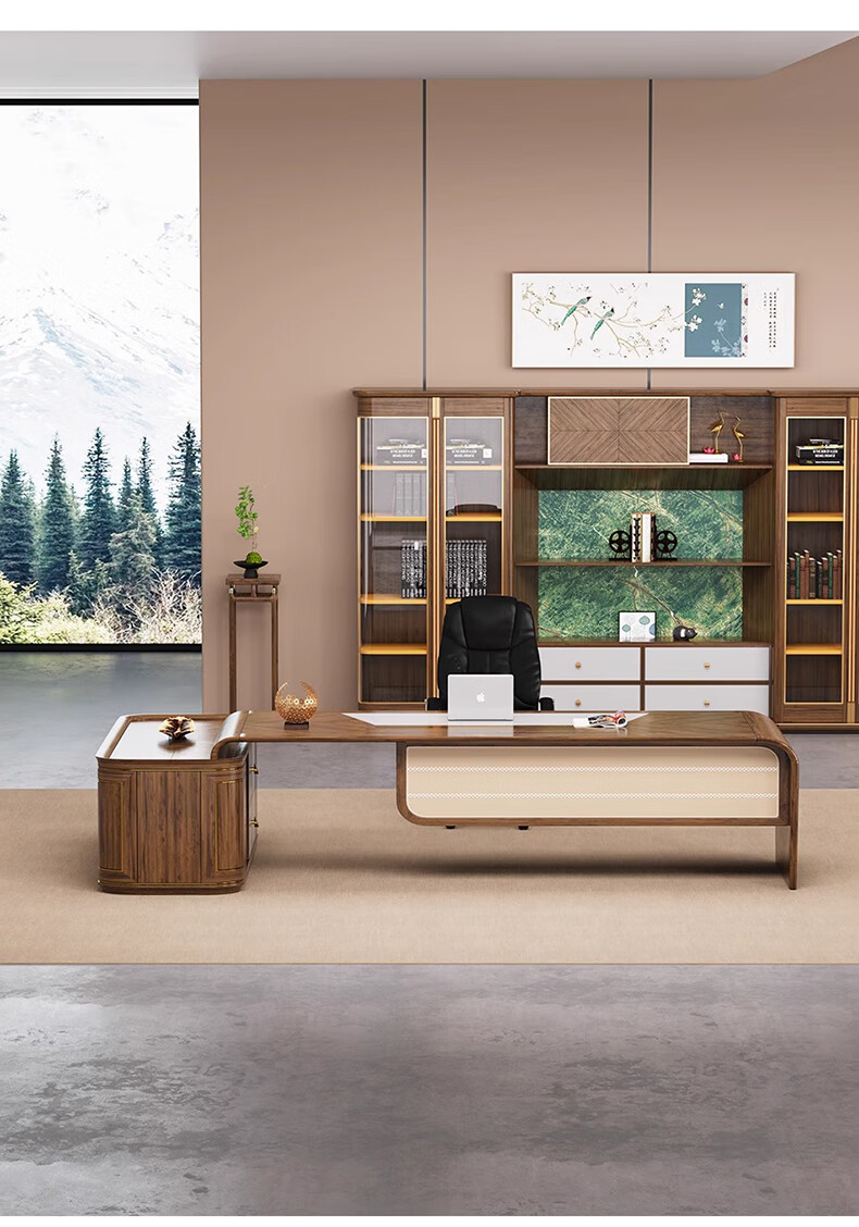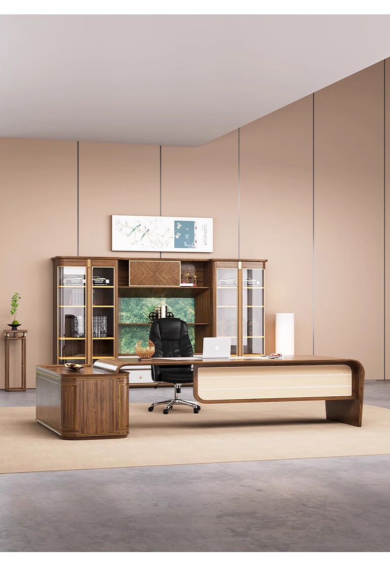 HONZONTX new Chinese style light luxury ash executive desk business office hotel B&B host boss desk filing cabinet furniture 2-meter desk