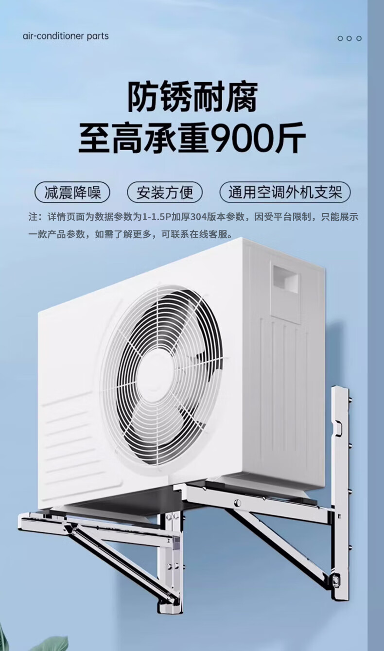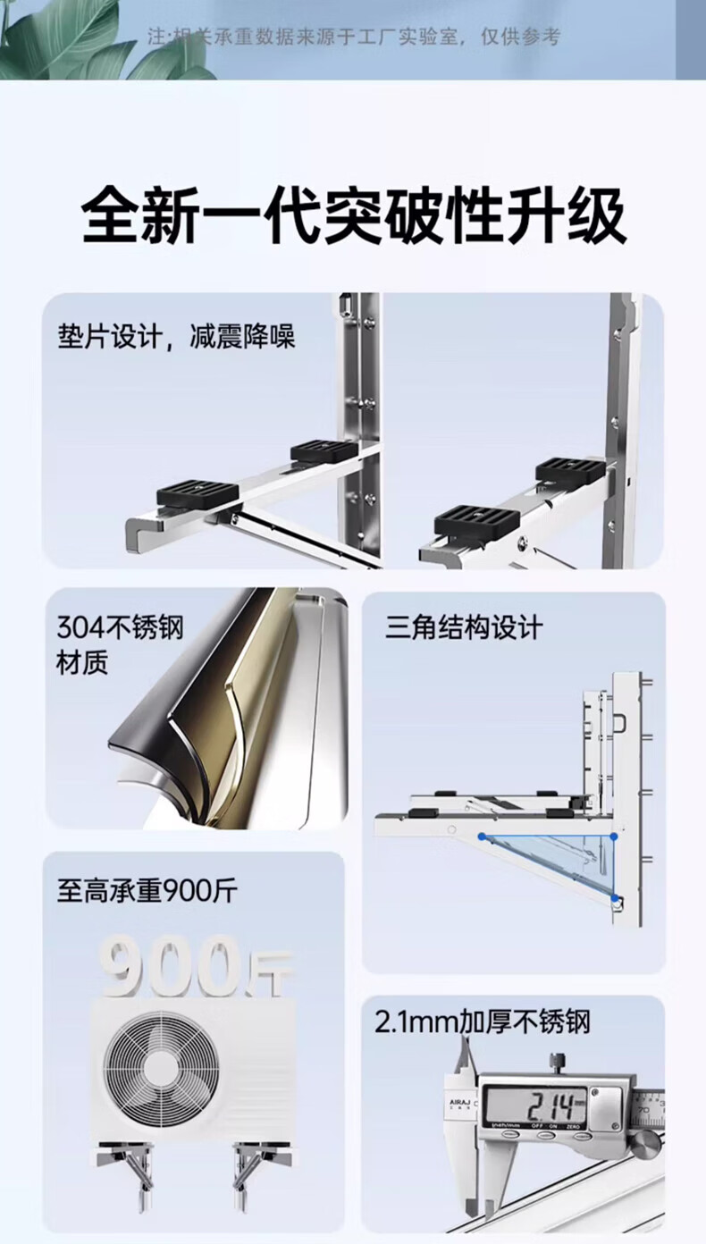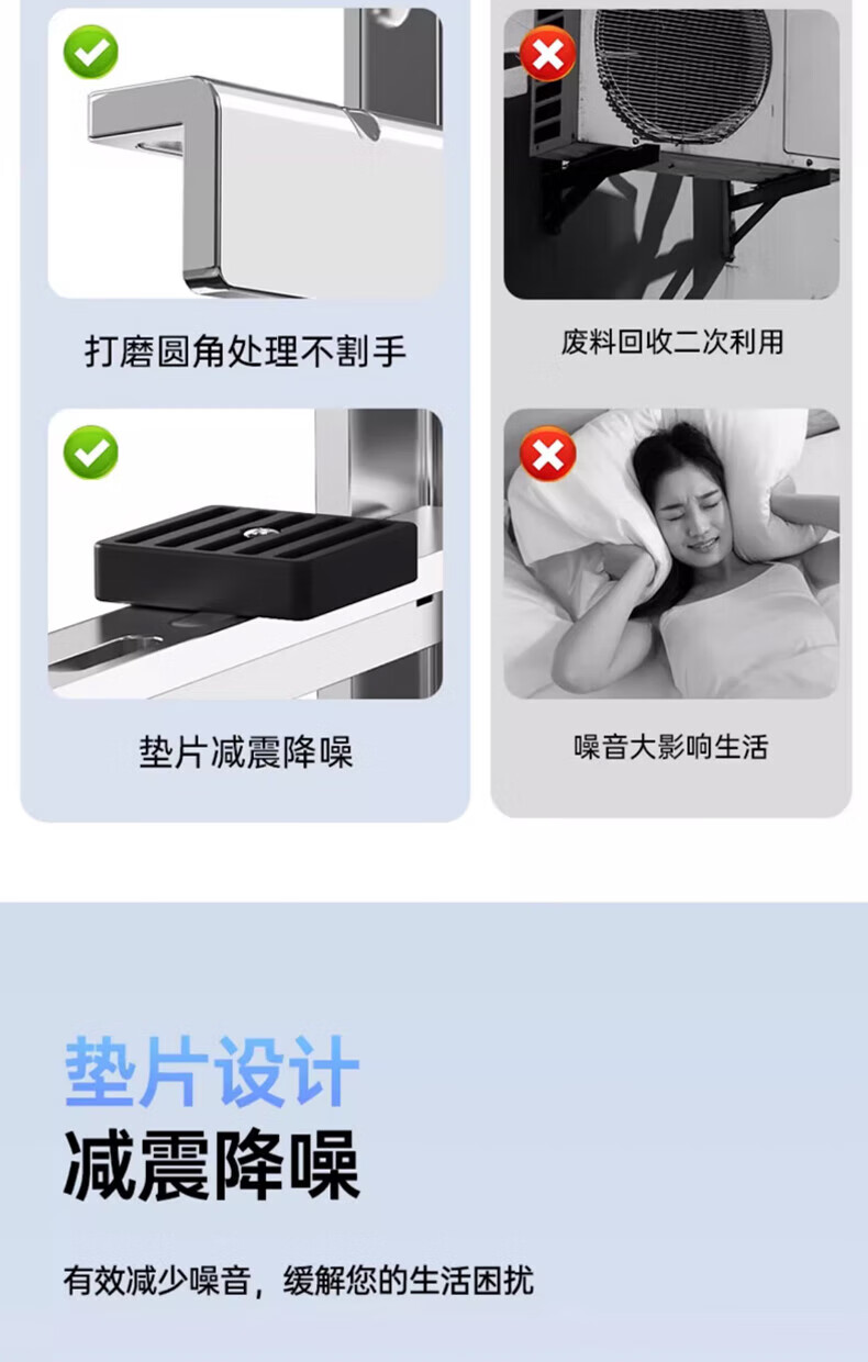 Beishi stainless steel air conditioner outdoor unit bracket 304/201 stainless steel air conditioner bracket 1 1.5 2 3p universal air conditioner outdoor rack suitable for Hisense Skyworth TCL Xiaomi, etc. 304 stainless steel with 4 shock absorbing pads 1-1.5P upgraded and thickened