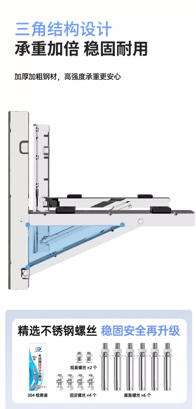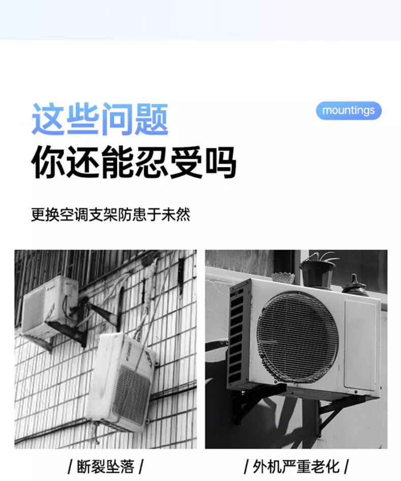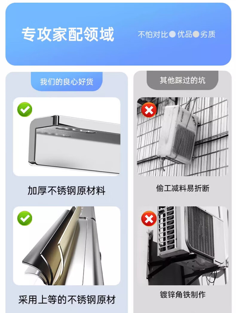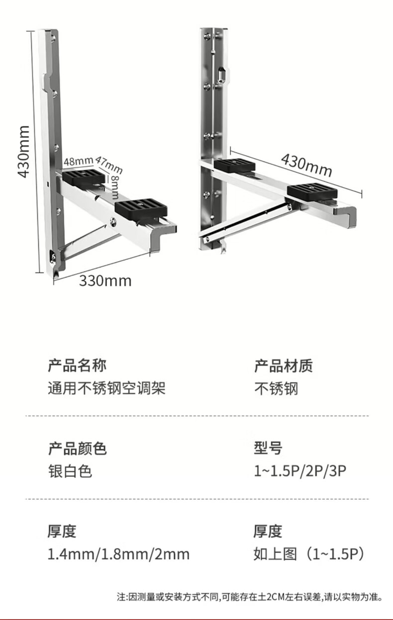 Beishi stainless steel air conditioner outdoor unit bracket 304/201 stainless steel air conditioner bracket 1 1.5 2 3p universal air conditioner outdoor rack suitable for Hisense Skyworth TCL Xiaomi, etc. 304 stainless steel with 4 shock absorbing pads 1-1.5P upgraded and thickened
