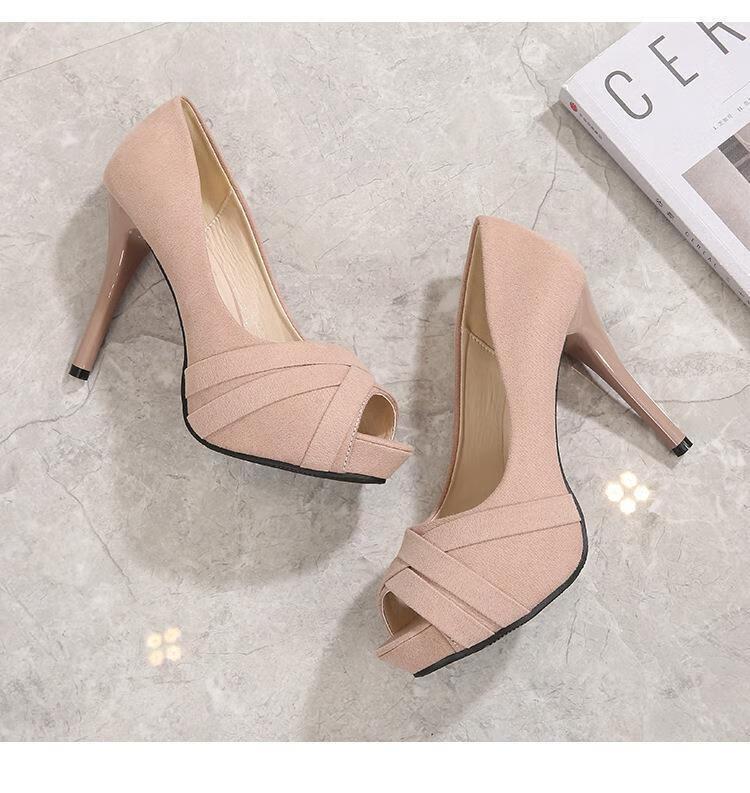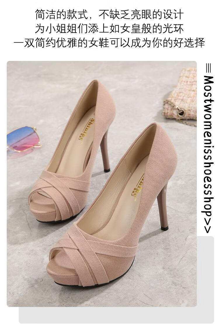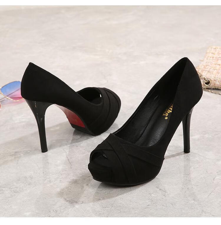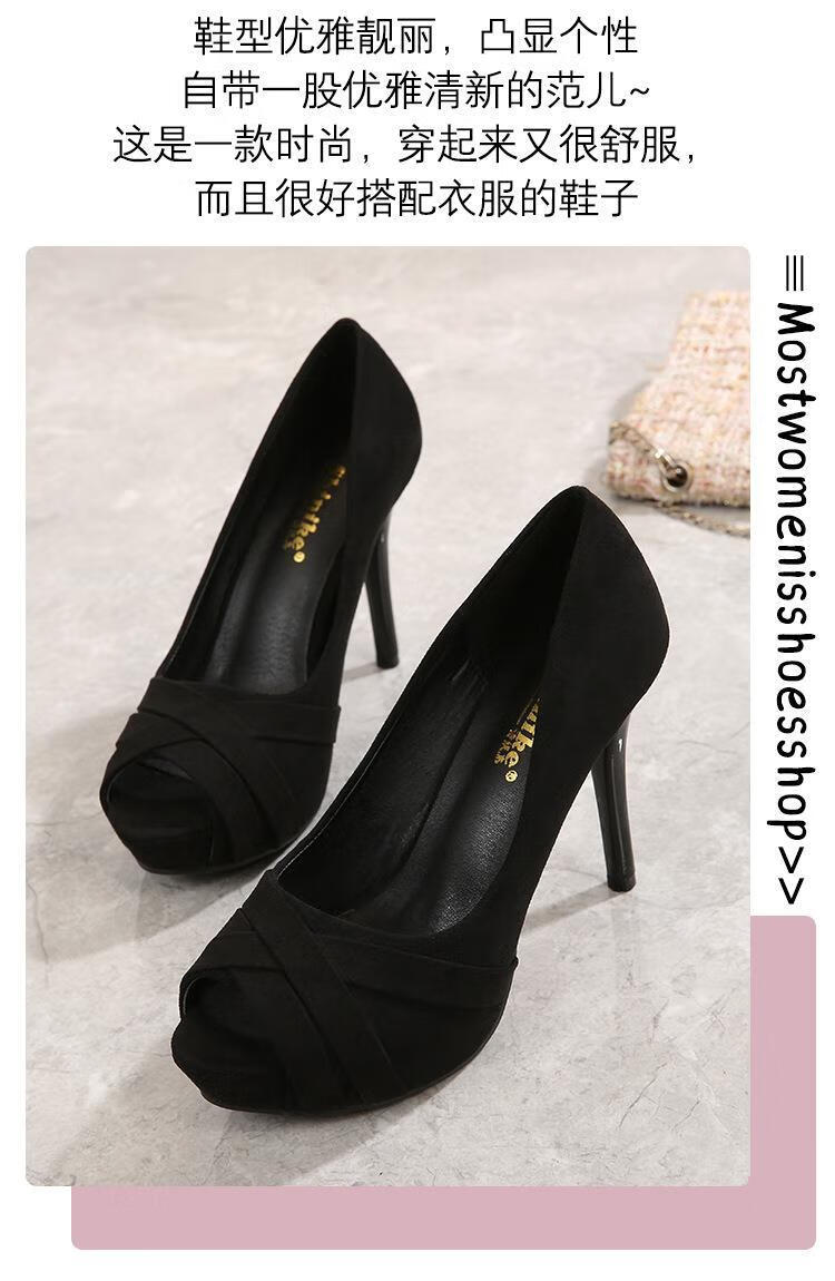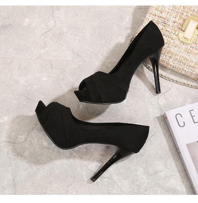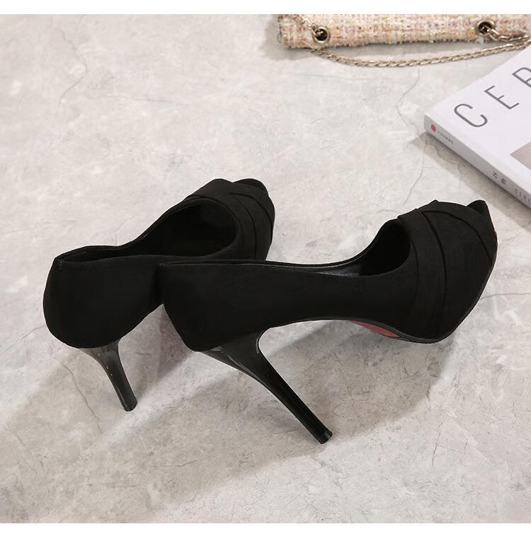 Luo Zhichao spring and summer nightclub sexy fish mouth sandals waterproof platform stiletto high heels women's suede shallow mouth work single shoes black fish mouth 35