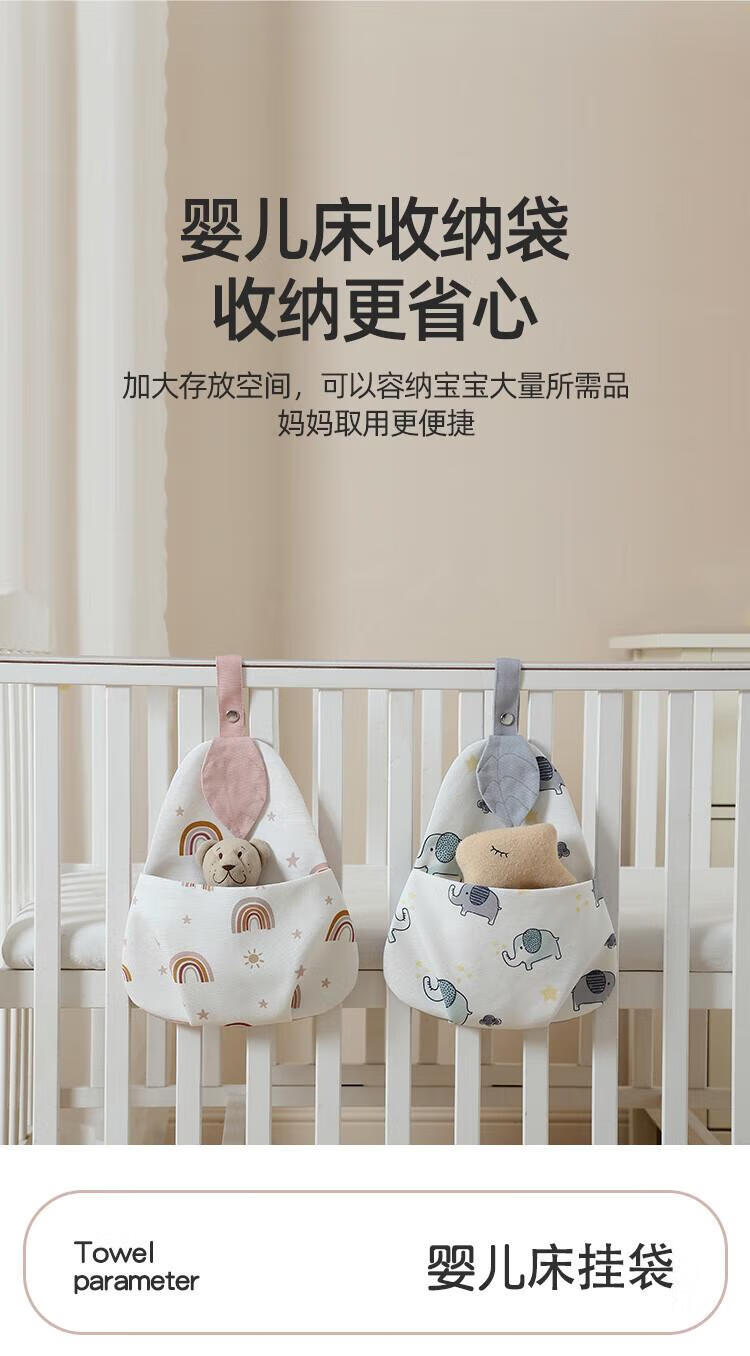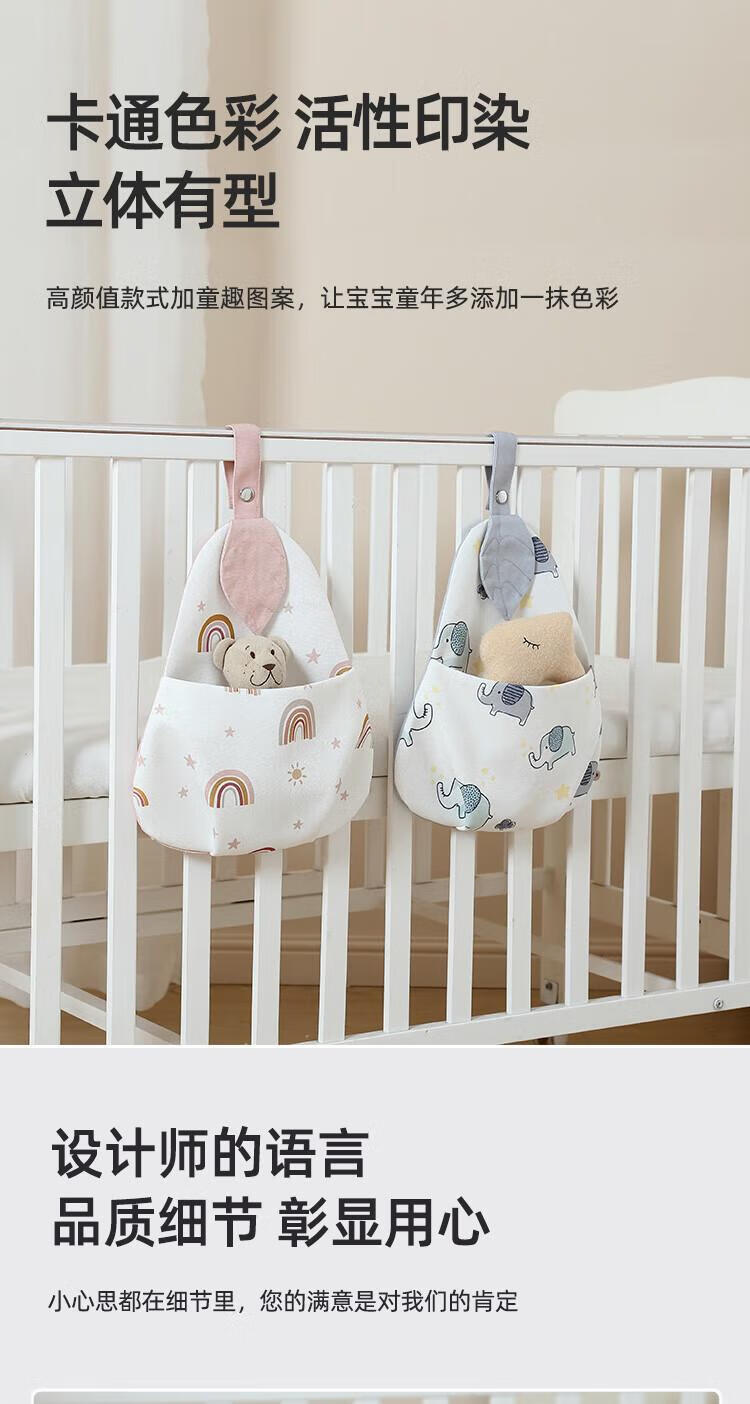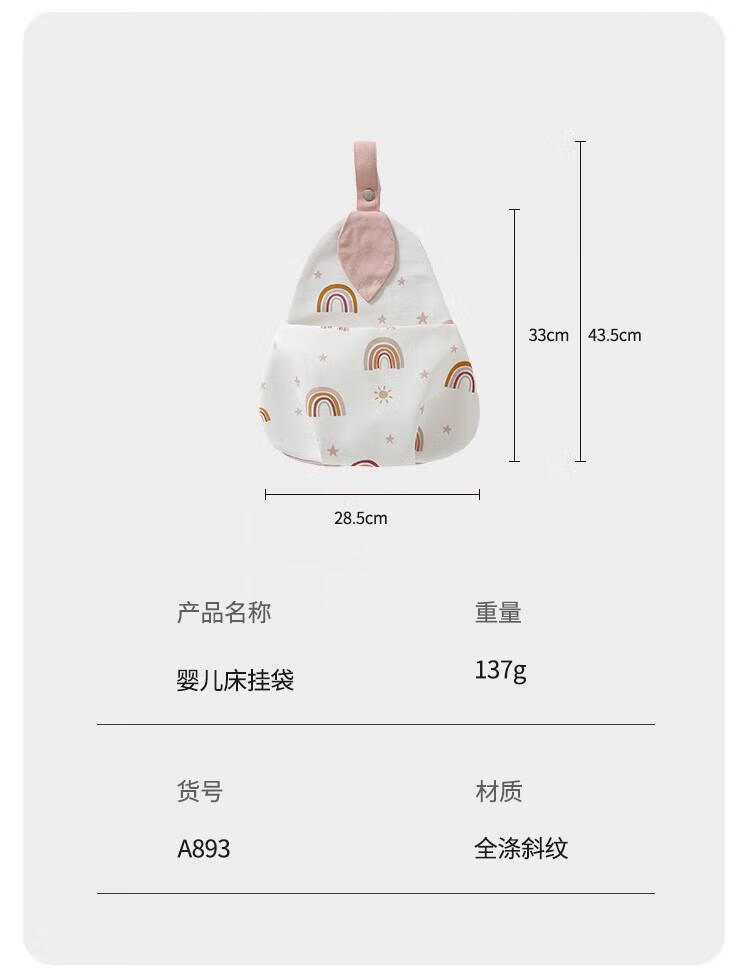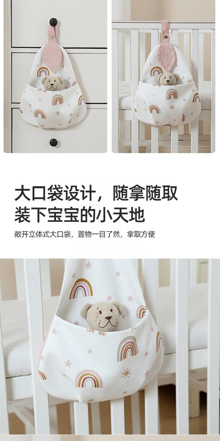 Baby crib hanging bag hanging basket bedside storage bag children's multifunctional washable diaper storage bag bedside storage bag leaf rainbow hanging bag