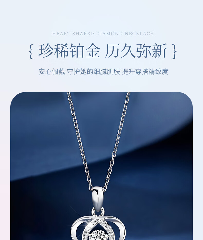 China Gold (CHINA GOLD) Love Platinum Necklace for Women Platinum Topaz Pendant Birthday Gift for Girlfriend and Wife Wedding Anniversary Practical Gift Platinum Heart With You Pendant + Platinum Chain - Pricing