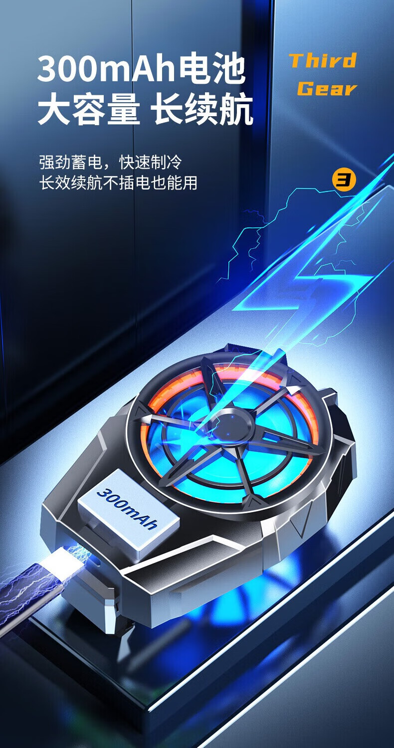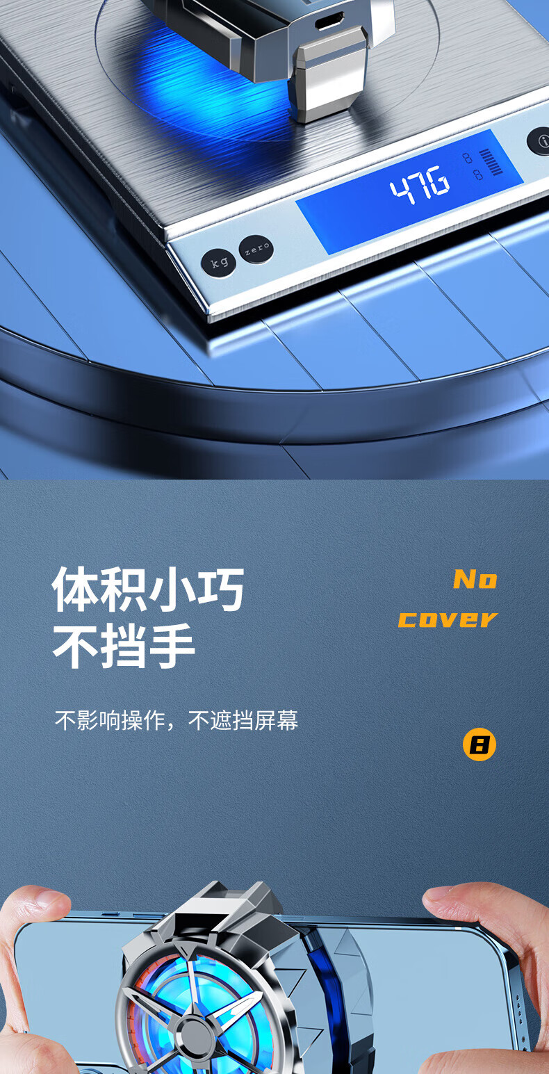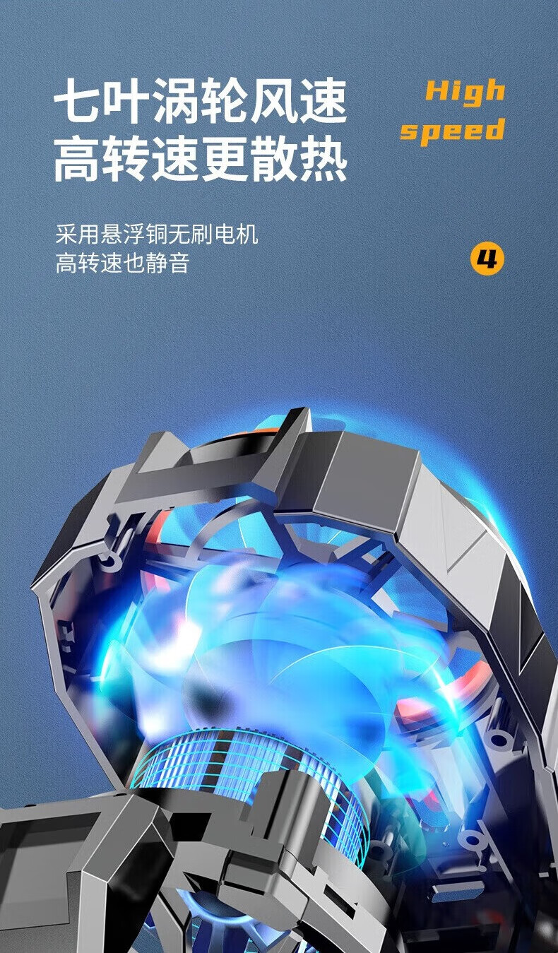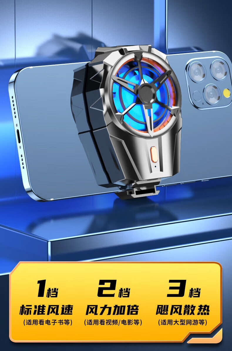 GUIG radiator, mobile phone radiator, special radiator for gaming, mobile phone back clip-type wind cooling artifact, silent fan, adjustable plug-in model, elegant black, plug-in model, matte