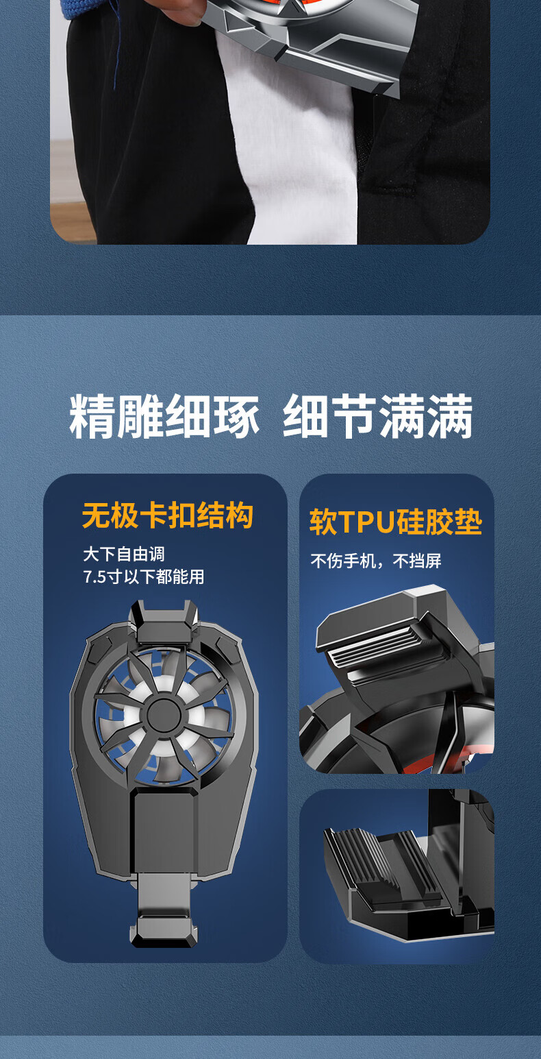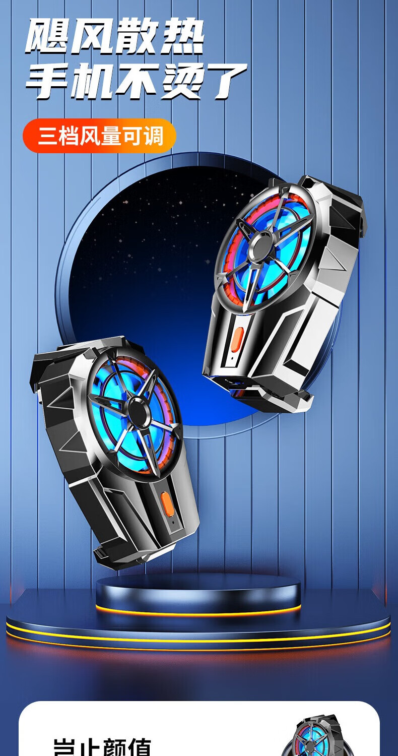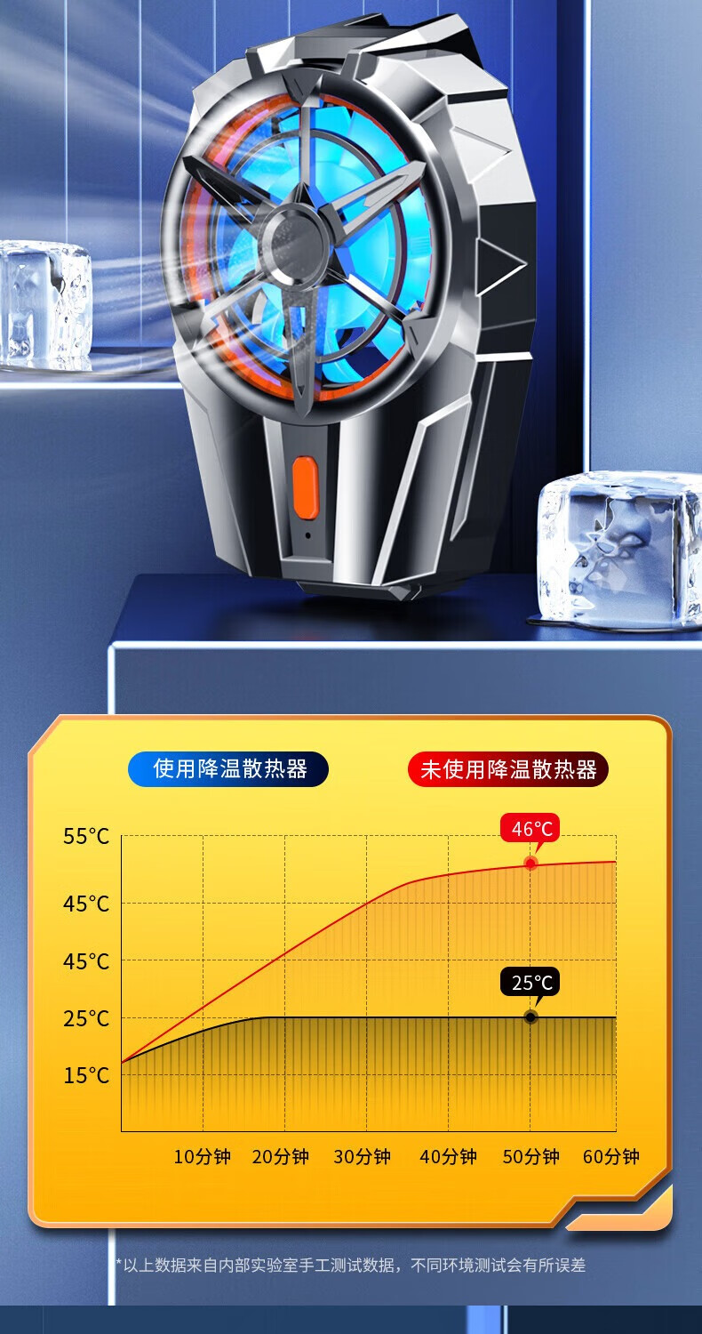 GUIG radiator, mobile phone radiator, special radiator for gaming, mobile phone back clip-type wind cooling artifact, silent fan, adjustable plug-in model, elegant black, plug-in model, matte