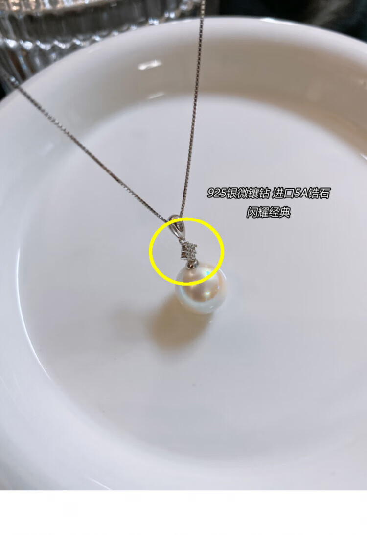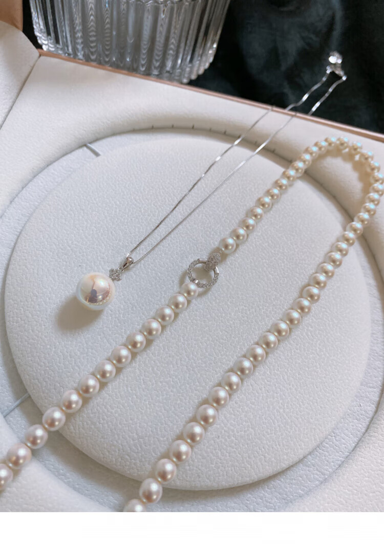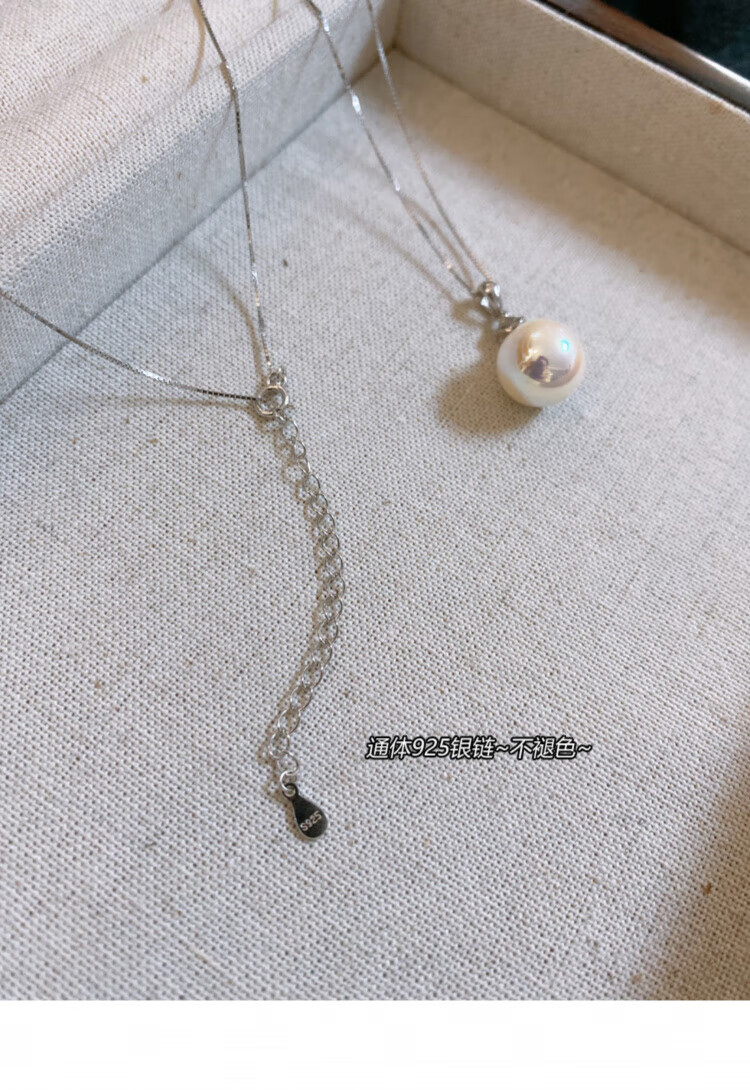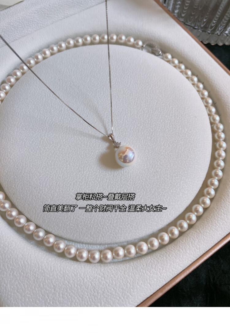 Pearl necklace pendant 925 silver AKOYA goddess pink light female French retro light luxury feeling diamonds quiet luxury daughter gentle heroine 12MM AKOY