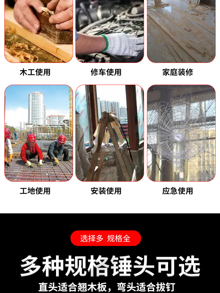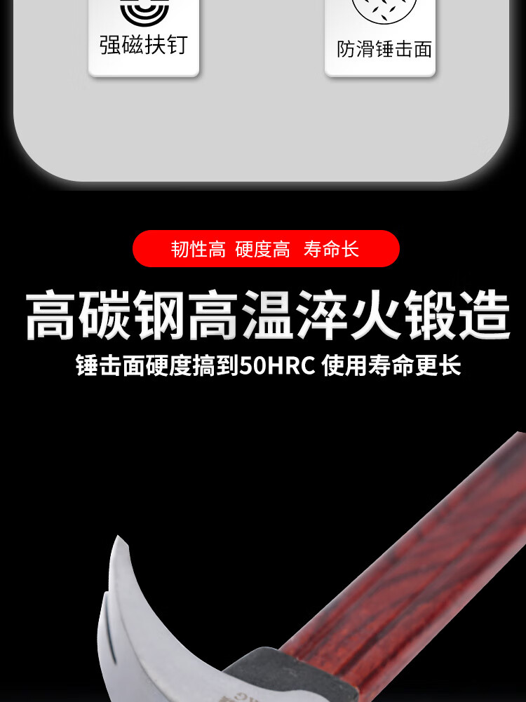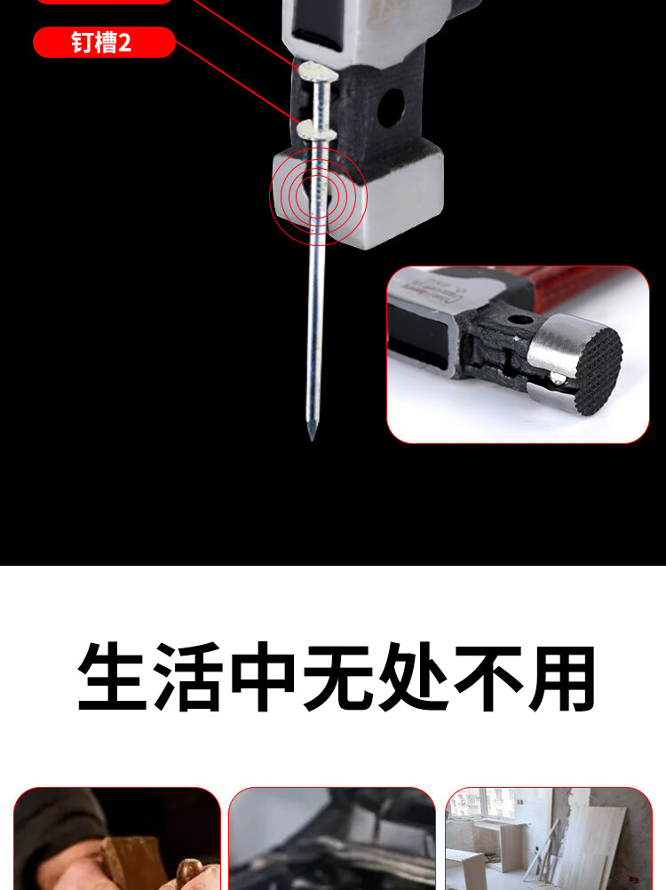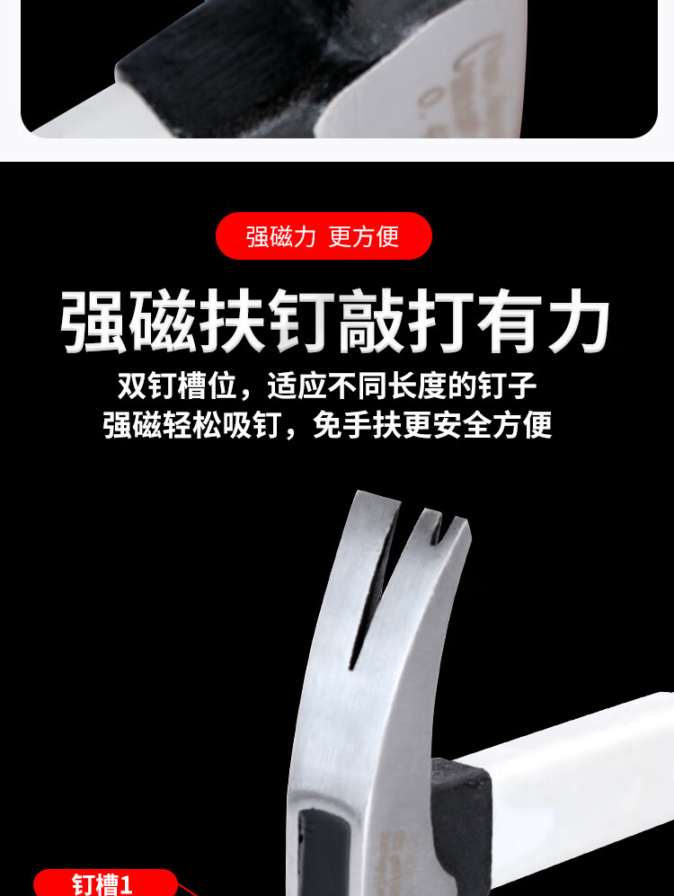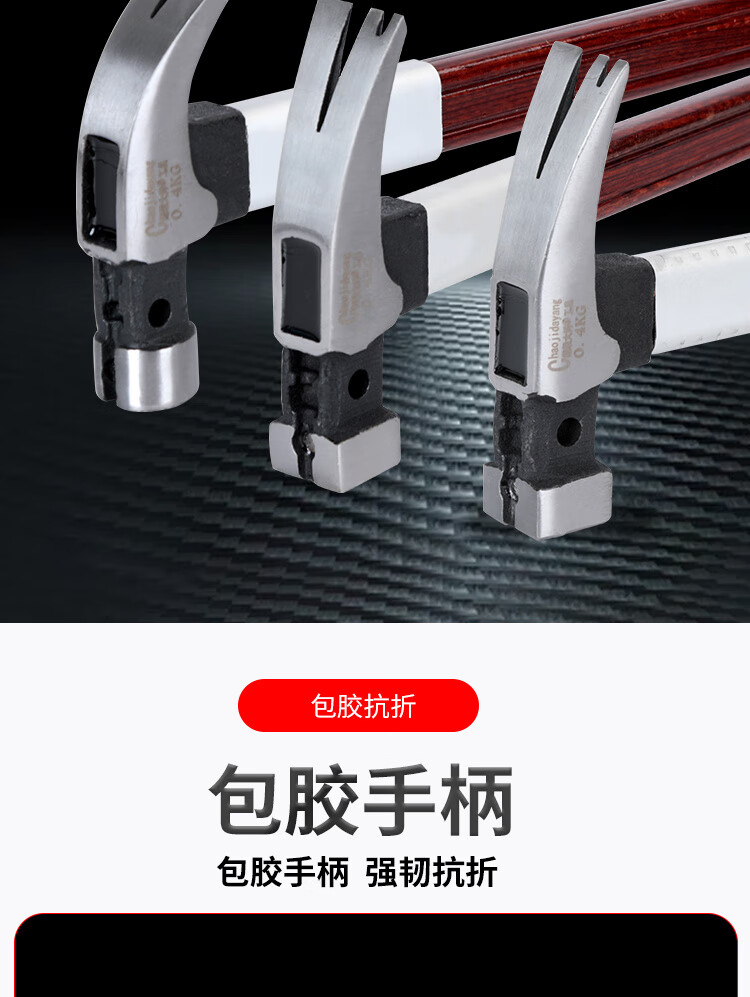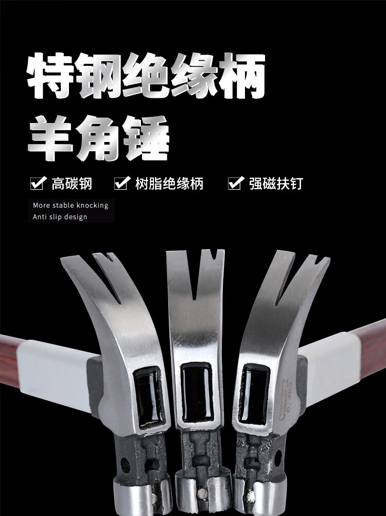 Vinoa aluminum set claw hammer 6 2 8 2 insulated handle electrician hammer household carpentry durable multi-functional construction nails 6 two heads + magnetic attraction square head straight claw