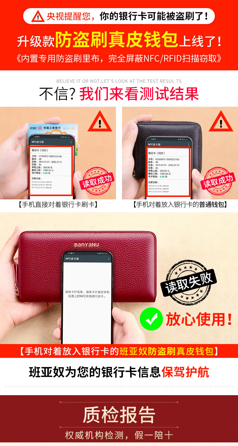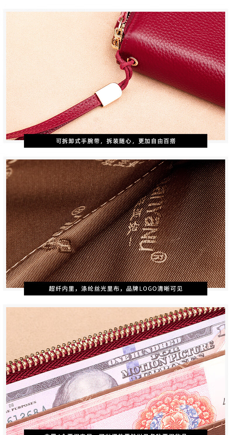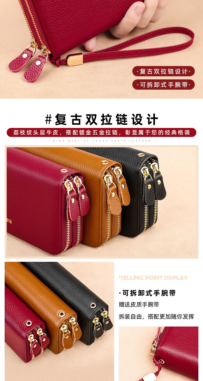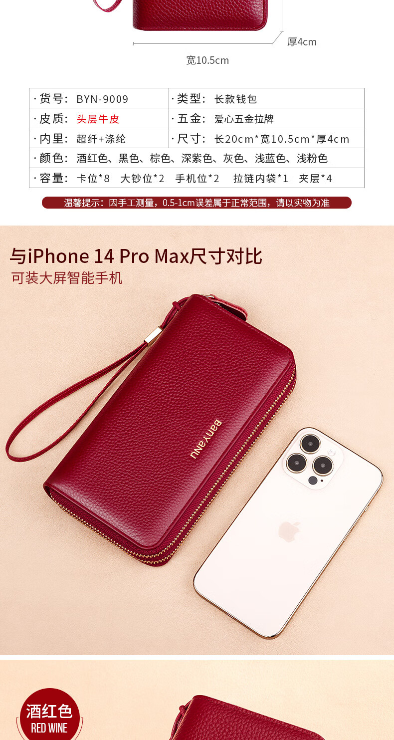 Banyanu Wallet Women's Long Style 2025 New Fashion Large Capacity First Layer Cowhide Wallet Double Zipper Genuine Leather Clutch Brown (First Layer Cowhide) Anti-Theft Brush No Specifications