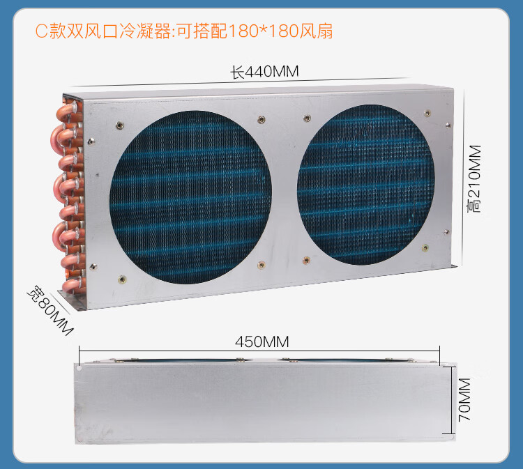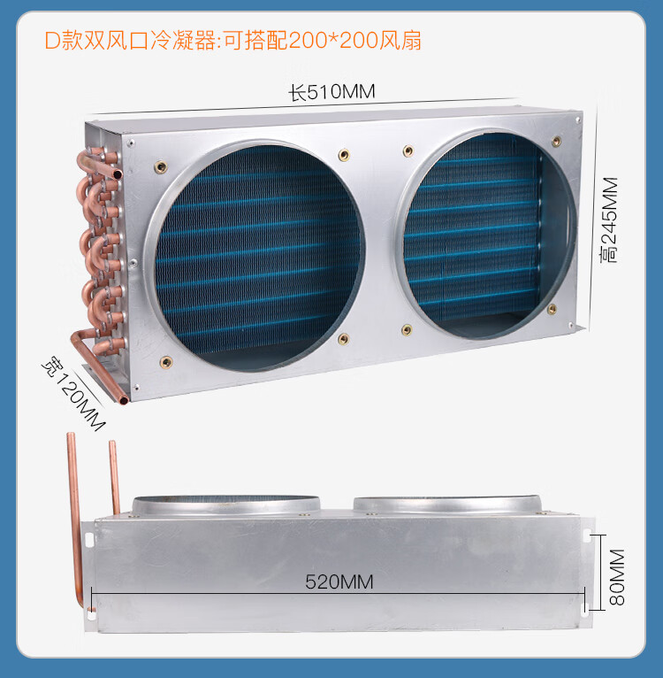 XMSJ морозильник, холодильник, конденсатор, испаритель с вентилятором, радиатор с медной трубкой, небольшой ребристый радиатор с воздушным охлаждением и водяным охлаждением, конденсатор типа D с двойным выпуском воздуха + 2 200 вентиляторов