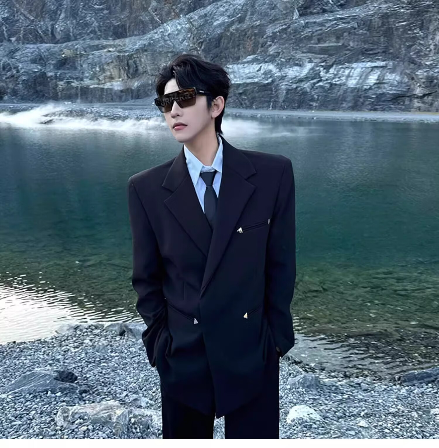 Sound Monkey suit suit men's slim fit men's suit jacket casual suit dress silhouette three-piece niche designer suit suit jacket + white shirt + trousers, free tie XL (115-130Jin Jin equals 0.5 kg)