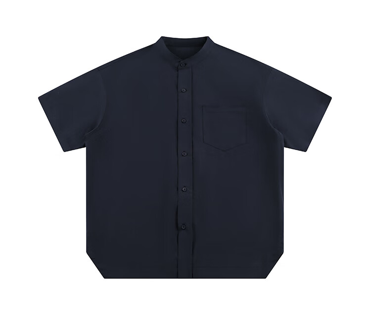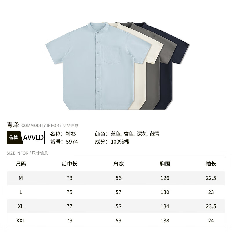 AVVLD summer henley collar short-sleeved shirt for men 2025 new pure cotton solid color loose simple casual boys shirt jacket navy blue 2XL