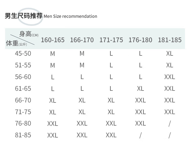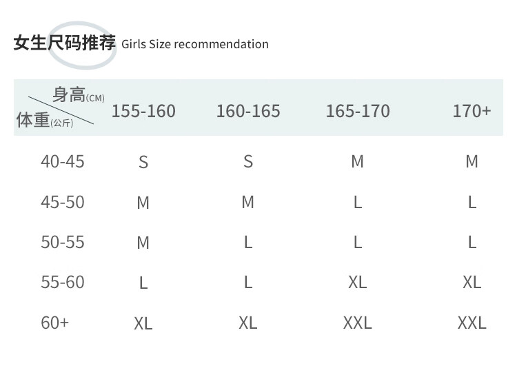 China (cm) 160-165/84-86 165-170 / 88-90 167-172 / 92-96 168-173 / 98-102 170-176 / 106-110